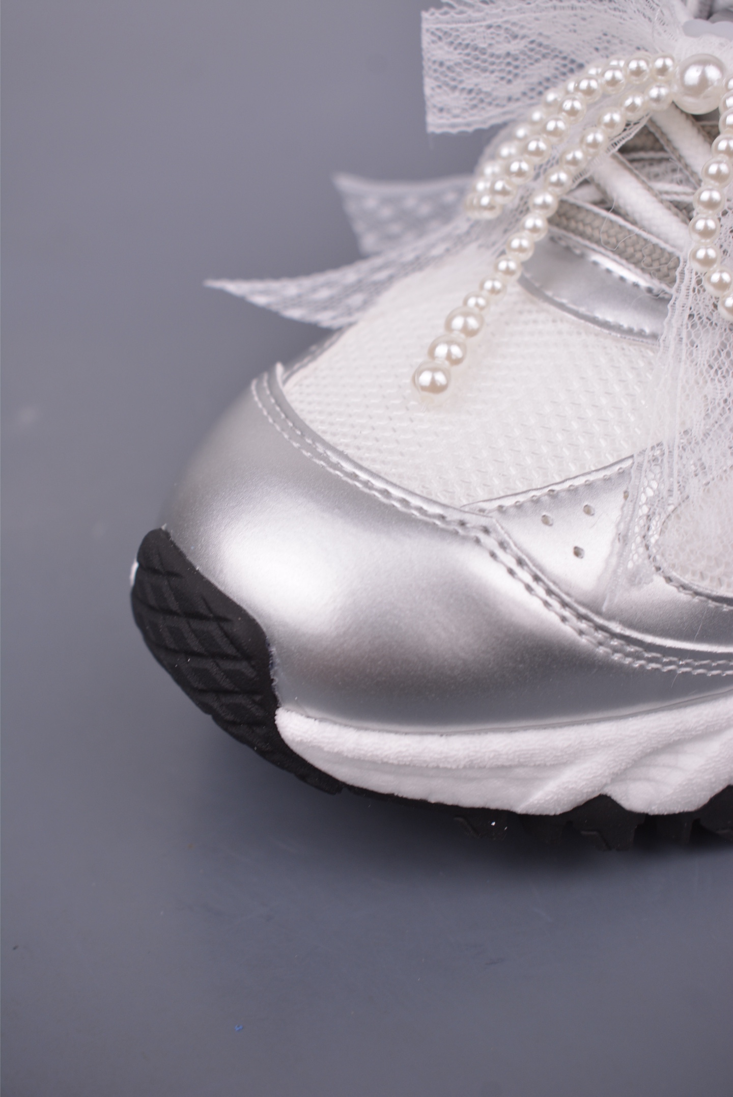 The upper features a lightweight, breathable mesh base overlaid with fine lace fabric, creating a layered look while maintaining excellent breathability. This shoe is both practical and feminine.