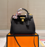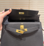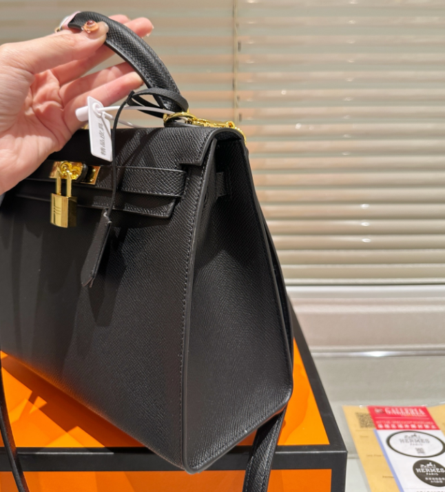 The HERMES Kelly 28 is crafted from premium Togo grained leather, boasting a supple, delicate texture that combines durability with lightweight comfort. The classic Noir black color exudes understated elegance, making it an essential and elegant piece for the urban woman.