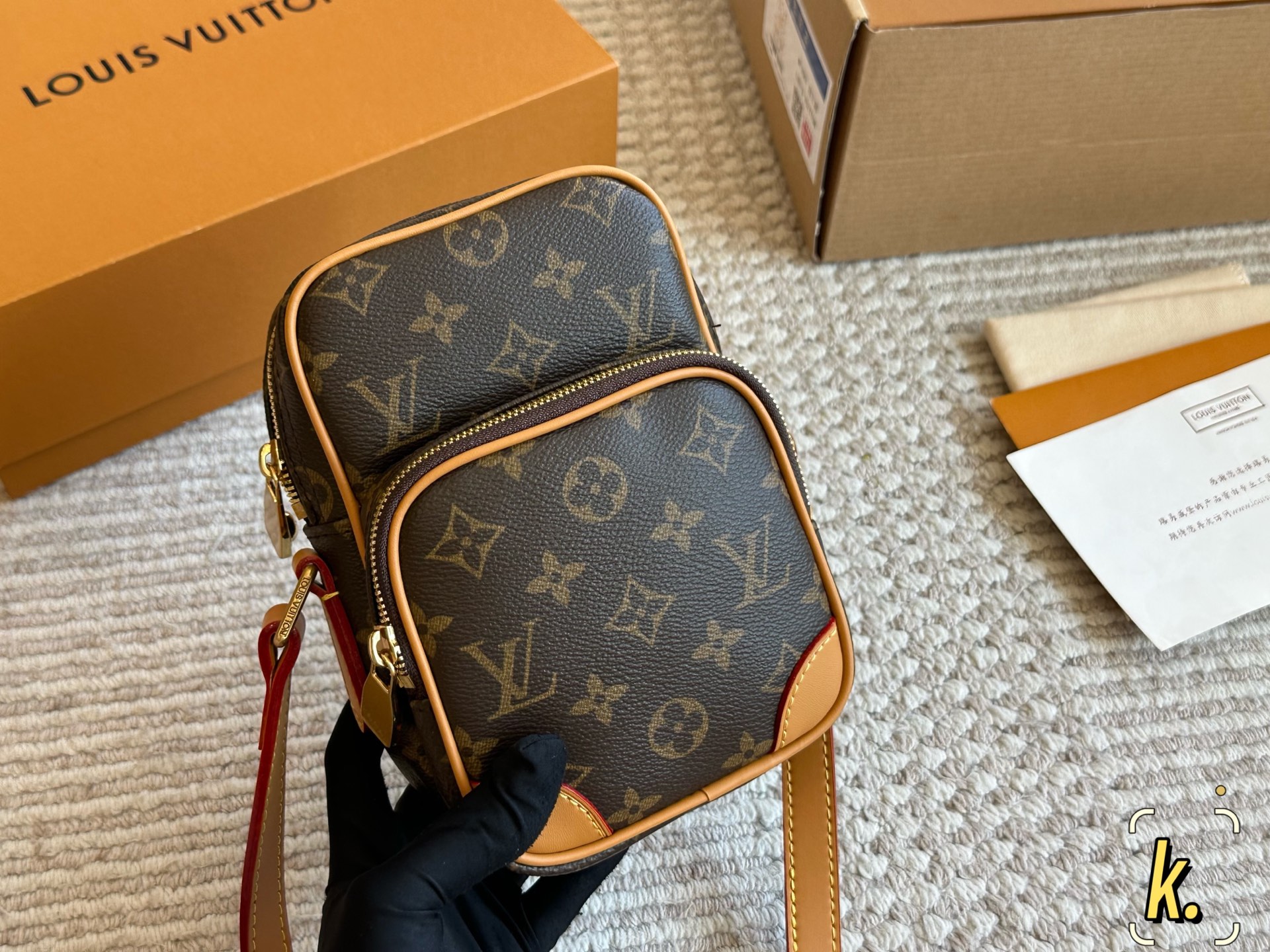 This LOUIS VUITTON Amazone men's crossbody bag features the brand's signature Monogram coated canvas paired with distressed gold hardware, creating a harmonious blend of vintage and modern. The compact and stylish design is both compact and practical, allowing it to be carried on the shoulder or crossbody, freeing your hands for effortless travel.