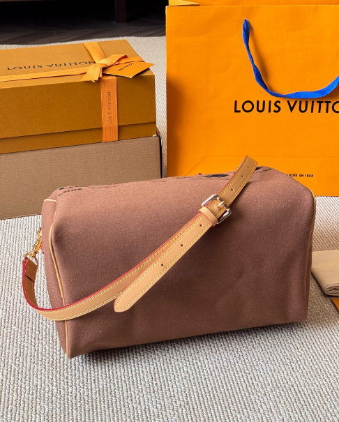 The LOUIS VUITTON x Nigo Speedy 25 Boston Bag perfectly blends the brand's classic Speedy design with Nigo's unique style. Made of durable canvas and a classic brown hue, it embodies a blend of understated luxury and street style.