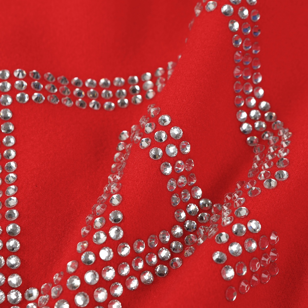 The front and back of this jacket feature an exquisite hot-brick cannonball beading technique. This technique combines traditional hot stamping with jewel inlay techniques, adding a touch of opulence and three-dimensionality to the overall look. Each bead is meticulously selected and crafted to ensure impeccable detail, giving the jacket a stylish and luxurious feel.