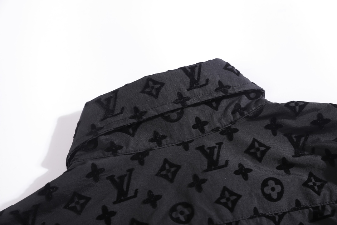 Louis Vuitton's new all-over jacquard denim shirt jacket features a custom-made, all-over jacquard denim fabric, meticulously crafted using a 10,000-needle embroidery technique. Every stitch and thread is meticulously crafted to perfection, showcasing the highest level of craftsmanship. The precise jacquard technique seamlessly blends the LV logo with the denim, creating a firm, smooth, and soft texture with exceptional wrinkle resistance. The exquisite detailing highlights the brand's quality. This denim shirt jacket boasts a youthful and dynamic style, with a unisex design that's effortlessly versatile and in tune with today's youthful aesthetic, creating a relaxed, casual autumn/winter look. Complete with a comprehensive range of accessories and meticulous craftsmanship, this garment is a must-have fashion item for the fall and winter seasons.