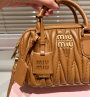 This MIU MIU Arcadie caramel lambskin handbag is not only a practical everyday companion, but also a stylish addition that elevates your overall look. It's perfect for the modern woman who appreciates quality and refinement, perfectly embodying a lifestyle of understated luxury.