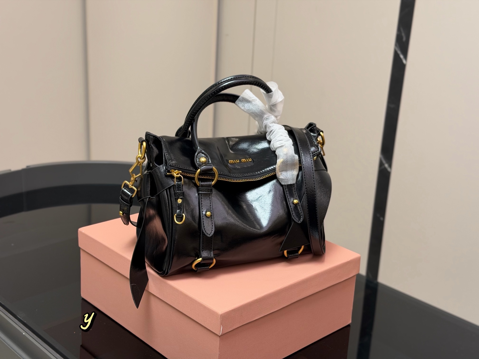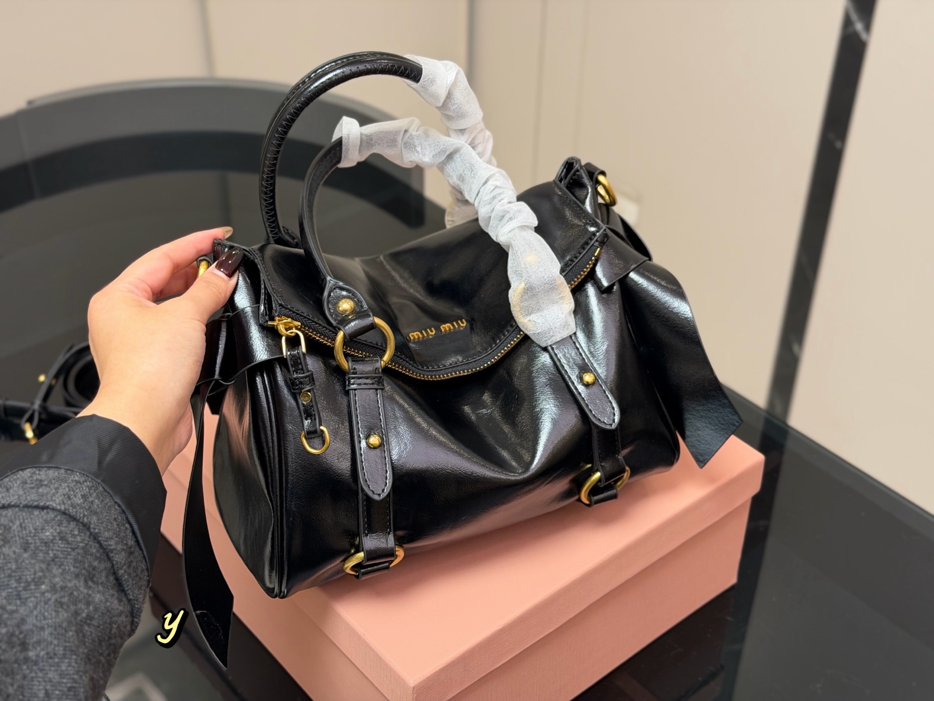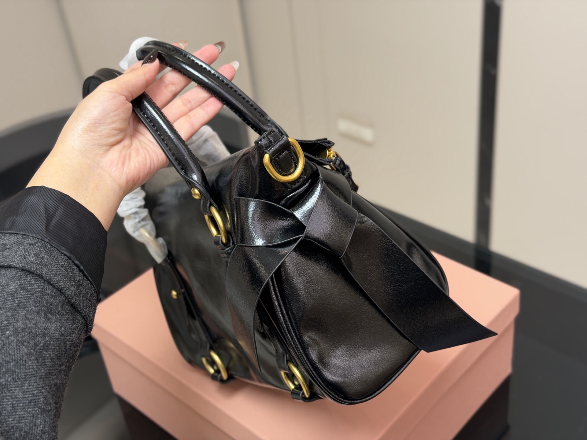 Product Name: Miu Miu Vintage Motorcycle Bag (Black and Gold Bow)