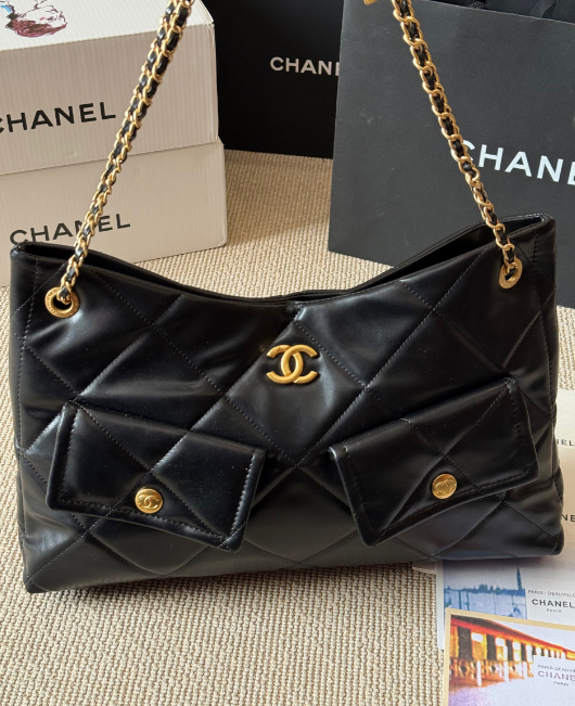 Whether paired with casual or formal attire, this CHANEL 25k lambskin shoulder bag adds a touch of extraordinary luxury to any look. It is a must-have for every stylish woman and perfectly embodies the timeless charm of the CHANEL brand.