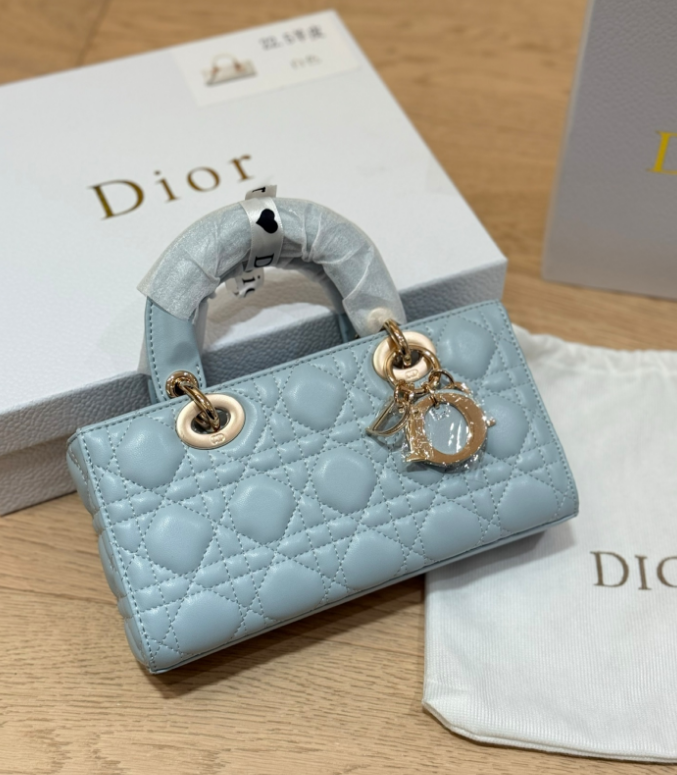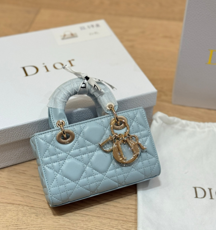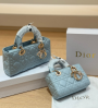 The ultra-mini DIOR Lady D-JOY bag is crafted from cannage lambskin for a soft touch and refined silhouette. Embellished with a metal logo pendant, it exudes understated luxury and reflects the brand's allure. The detachable chain shoulder strap allows for versatile carry, shoulder, or crossbody options, perfect for any occasion. The elegant, fresh lake blue hue and mini size offer both portability and a stylish accent, making it an ideal choice for both everyday and evening wear.