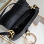 The iconic saddle shape, paired with a three-dimensional flap and a vintage metal "D" charm, showcases the meticulous craftsmanship of Dior's ateliers. The thin shoulder straps are lightweight and sleek, allowing it to be worn on one shoulder, underarm, or paired with a wide Dior shoulder strap for even more styling possibilities.