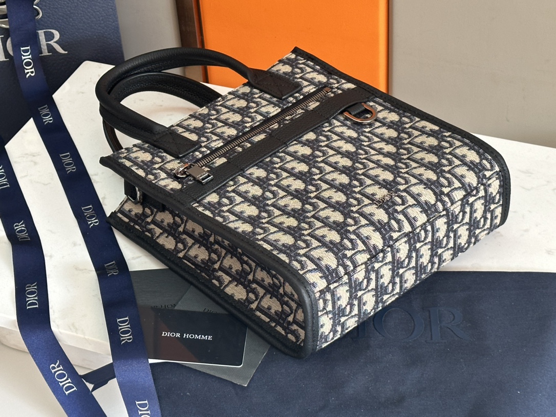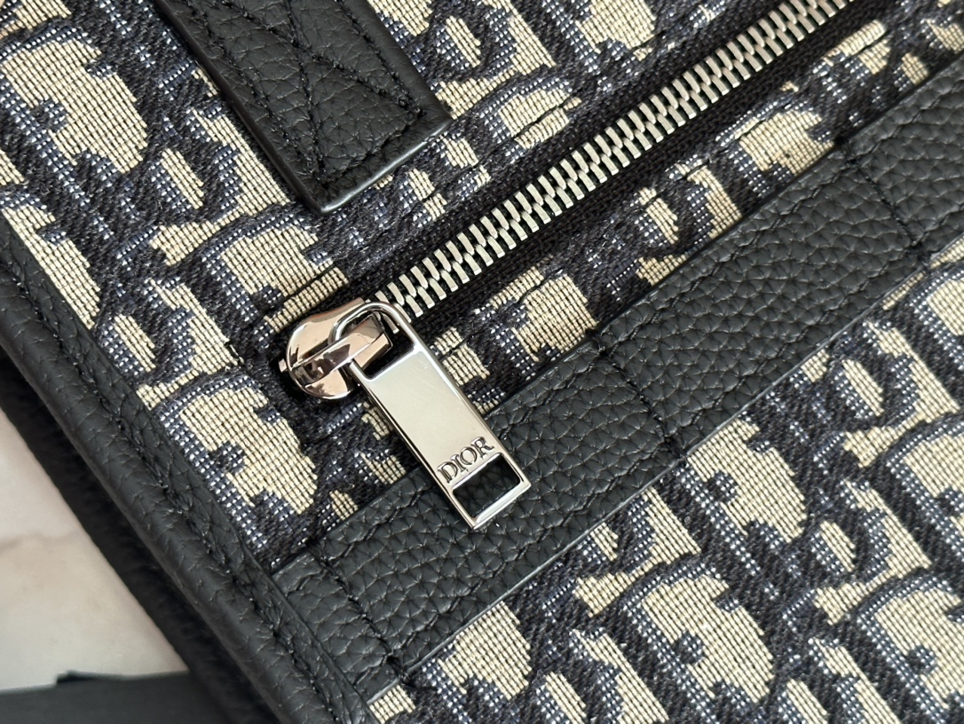 Classic Oblique print fabric with leather details embodies Dior's signature luxurious feel.