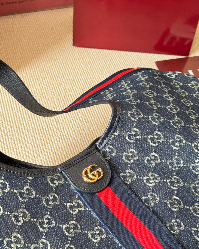 GUCCI Gucci GIGLI0 brand classic logo denim tote bag tote bag shopping bag handbag large women's blue