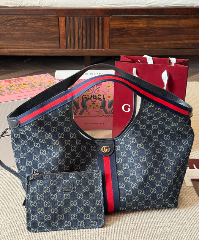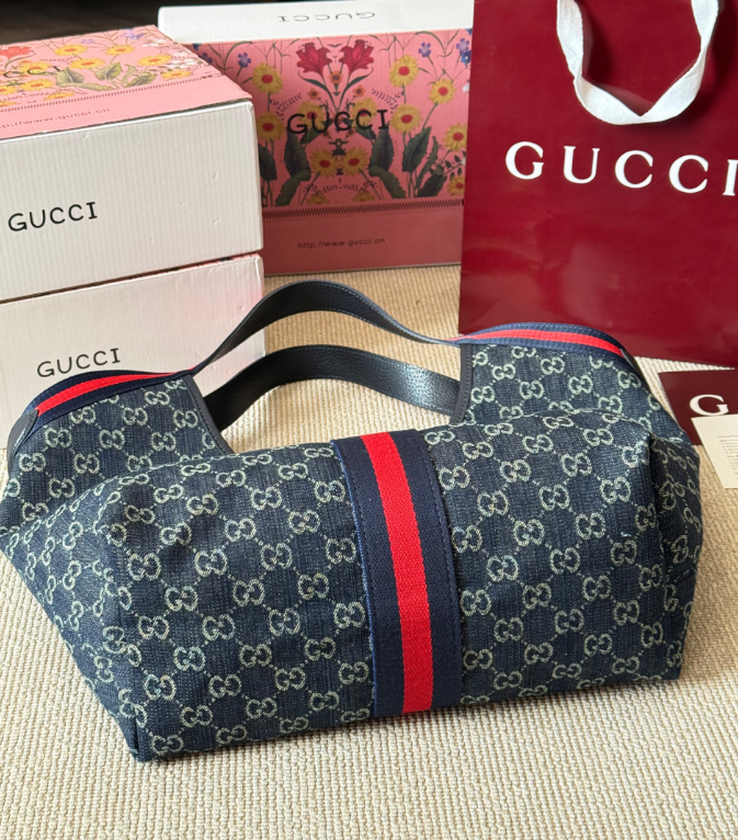 GUCCI has unveiled the new GIGLIO tote bag, featuring the brand's signature logo paired with soft denim, embodying understated yet stylish chic. Crafted from high-quality denim with a fine texture and soft touch, and embroidered with the signature GUCCI monogram, the bag exudes a unique blend of retro and modern allure. Its spacious design easily accommodates everyday essentials, making it a stylish and effortless choice for both urban commutes and weekend getaways.