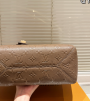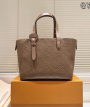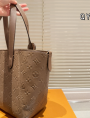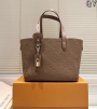 This LOUIS VUITTON All In One Small Tote Bag, crafted from smoked cowhide leather, boasts a fine, supple texture and exudes a unique sense of sophistication in its calmness. The understated embossed logo design eschews extravagance for a refined and sophisticated look.
