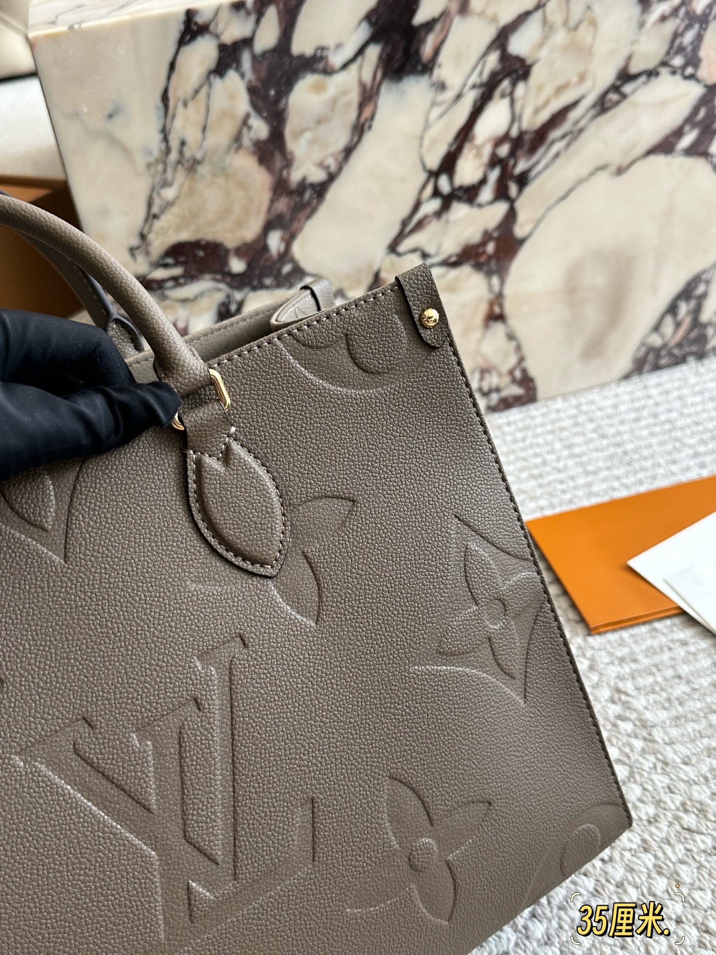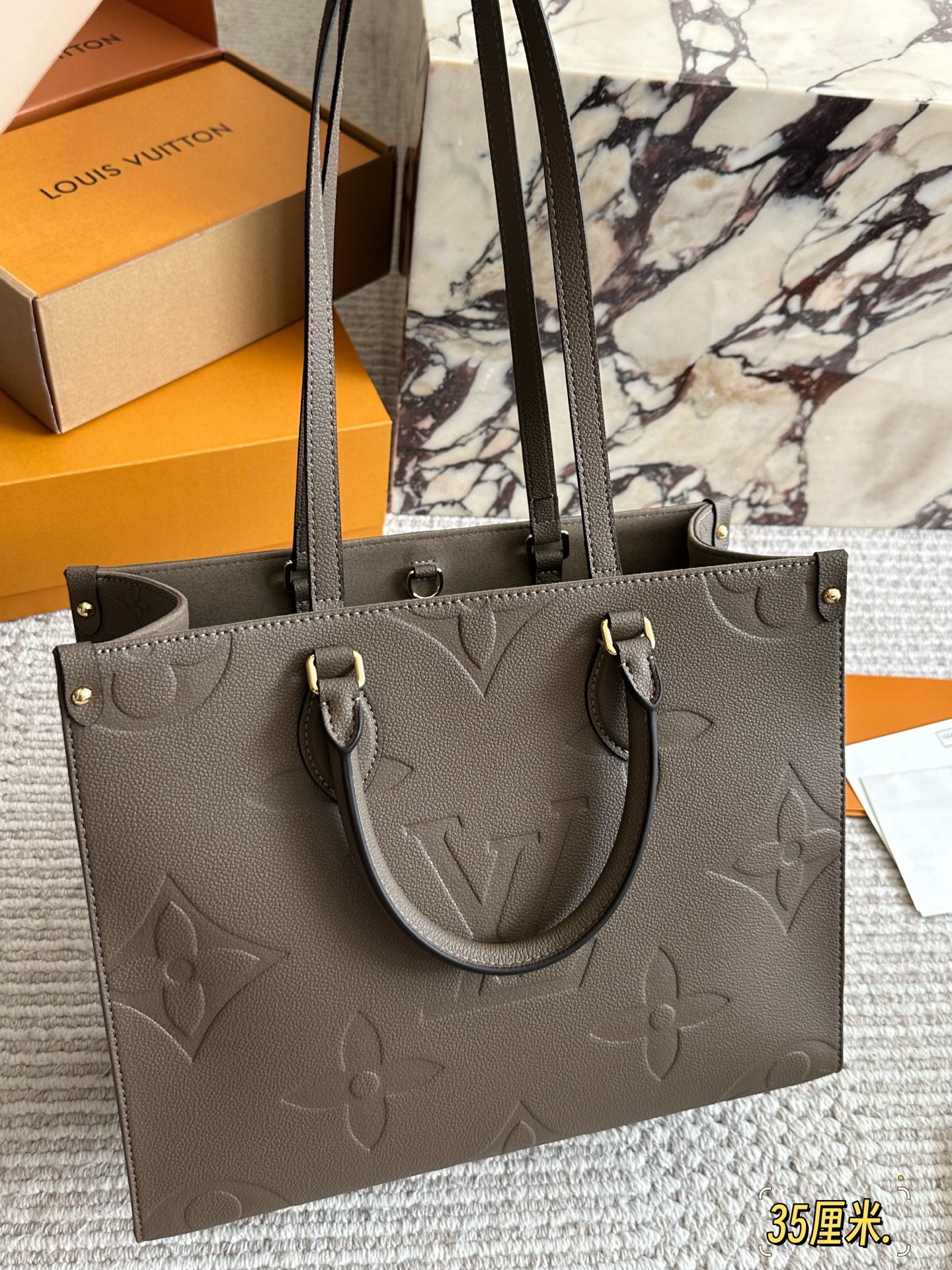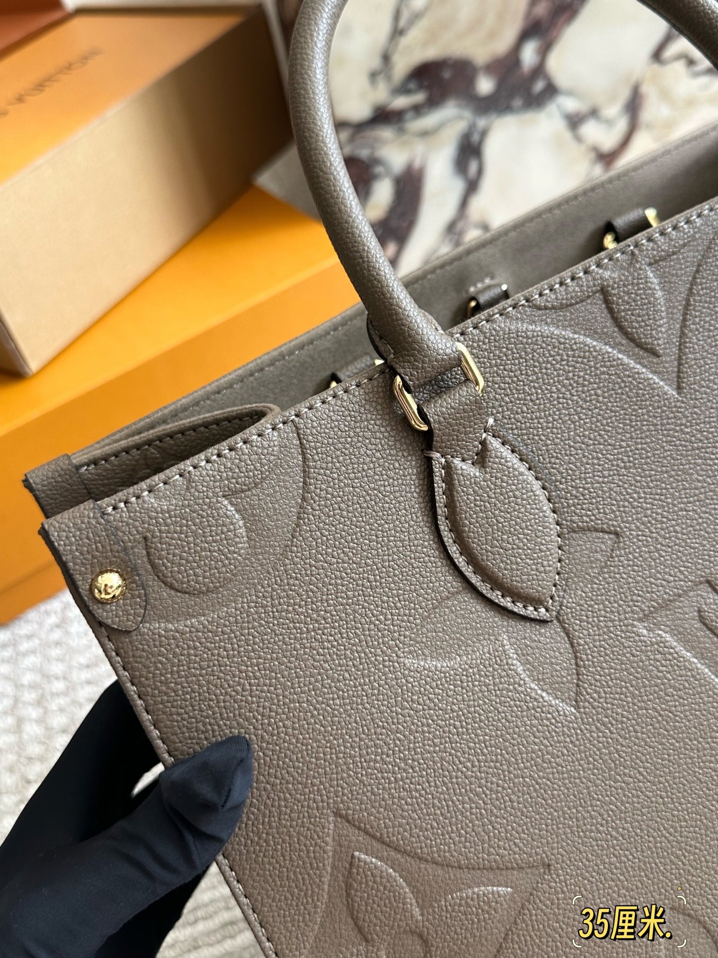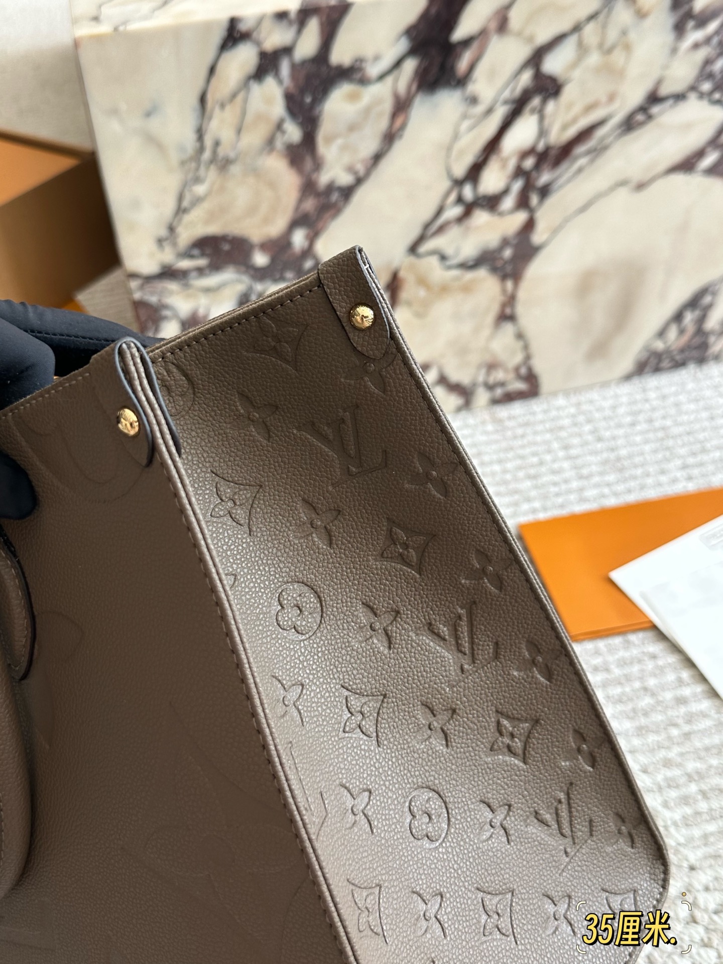 LOUIS VUITTON OnTheGo Medium Tote Bag | Embossed Logo·Grained Cowhide·Elegant Brown