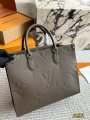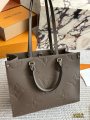LOUIS VUITTON ONTHEGO Logo Embossed Tote Bag Tote Bag Shopping Bag Grained Cowhide Handbag Medium Women's Brown