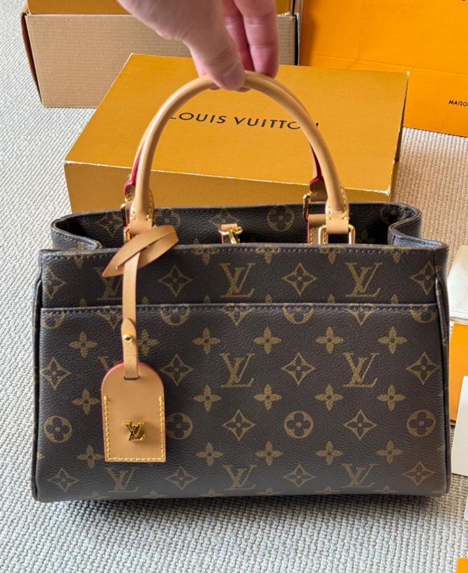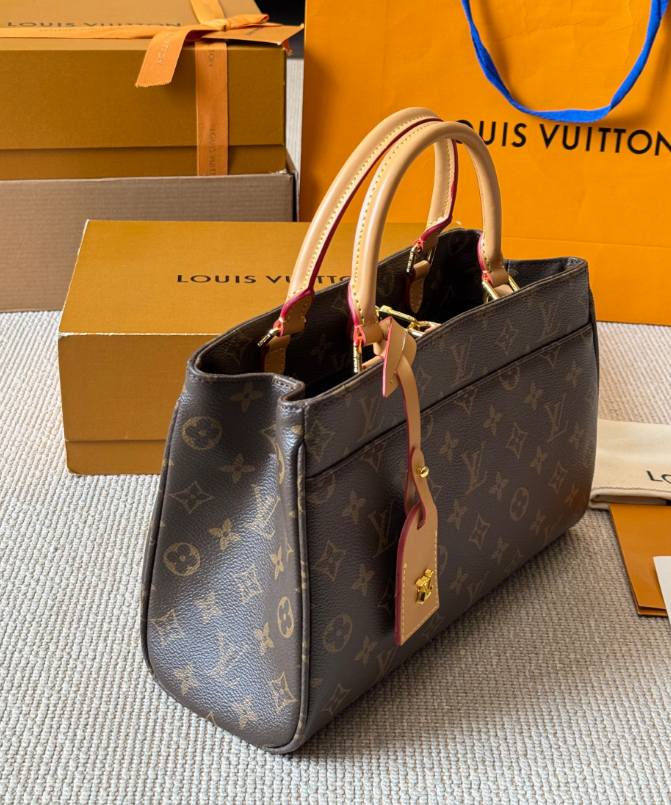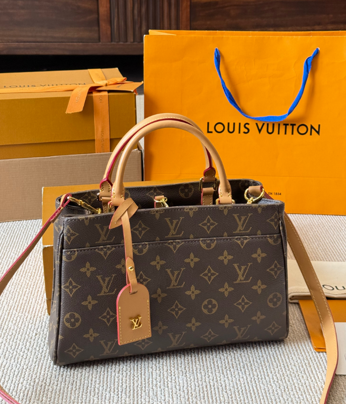 Crafted from the brand's signature Monogram coated canvas and trimmed with supple, natural cowhide, the Louis Vuitton Petit Palais handbag embodies Louis Vuitton's signature elegance. The contrasting brown monogram pattern and gold hardware create a timeless French sophistication.The bag's soft lines and crisp structure create an elegant yet practical design. The spacious interior features multiple patch pockets and zippered compartments for organized storage. The included detachable and adjustable shoulder strap and leather luggage tag allow for versatile carry: hand, shoulder, or crossbody, perfect for both work and casual occasions.