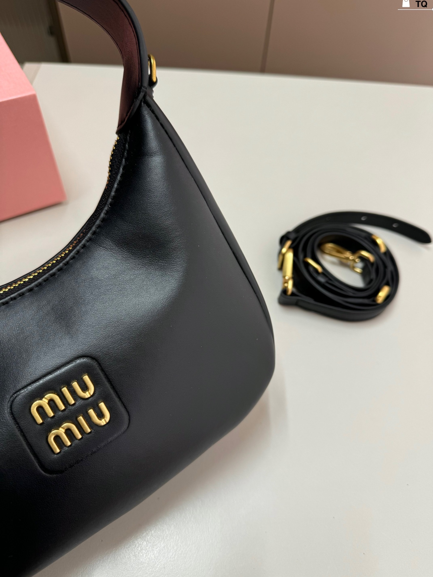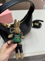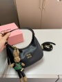 This black MIU MIU Miu Miu Hobo bag, with its minimalist, sleek curved silhouette and textured leather, embodies the brand's signature elegance and modernity. Crafted from fine, soft, premium leather with a smooth touch and a natural sheen, the bag is embellished with metal lettering details, creating a simple yet recognizable look that exudes understated sophistication.