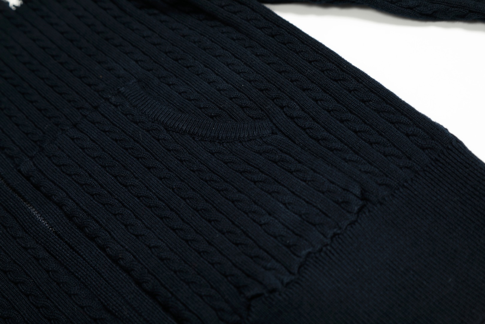 The cable-tie design on the jacket is meticulously crafted, requiring significant effort and cost. The result is a superior quality finish, providing comfort and elegance, embodying the classic Ralph Lauren style.