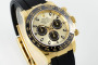 A perfect blend of classicism and luxury, this Rolex Cosmograph Daytona "Panda Dial" watch features a striking gold dial with delicate black subdials, creating a highly recognizable classic "Panda Dial" design. The 18ct gold case exudes elegance, and the 40mm diameter, defined by the golden ratio, further enhances a man's calm and elegant demeanor.