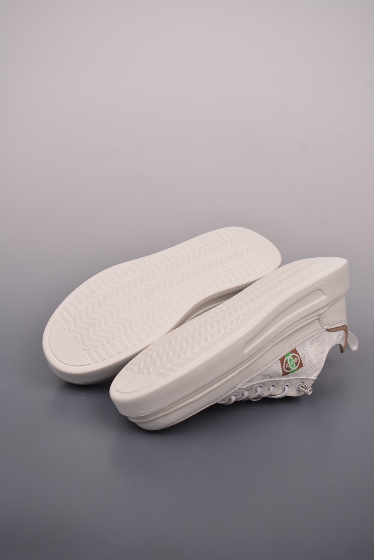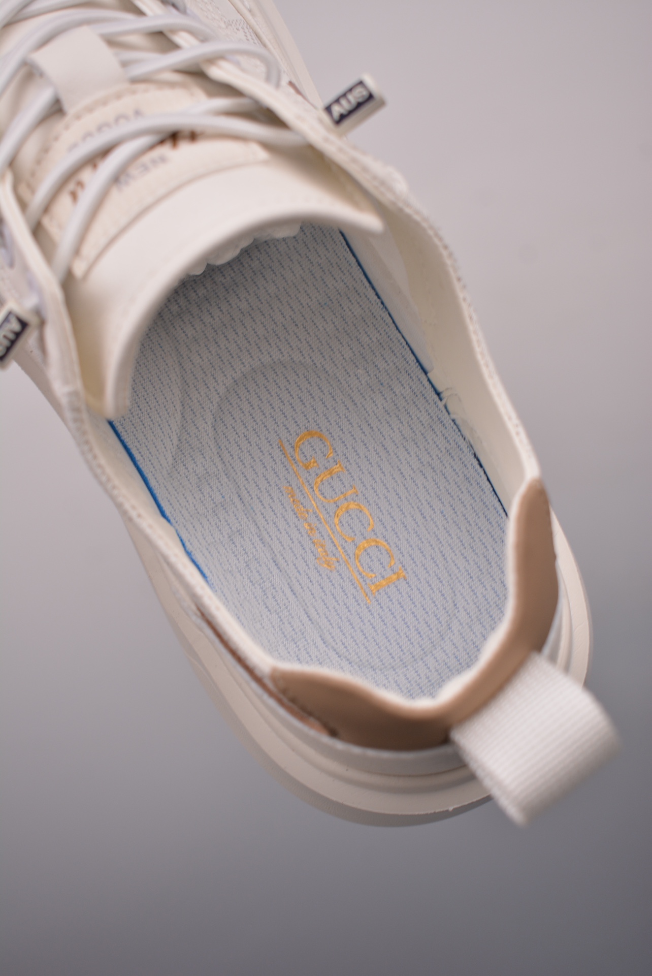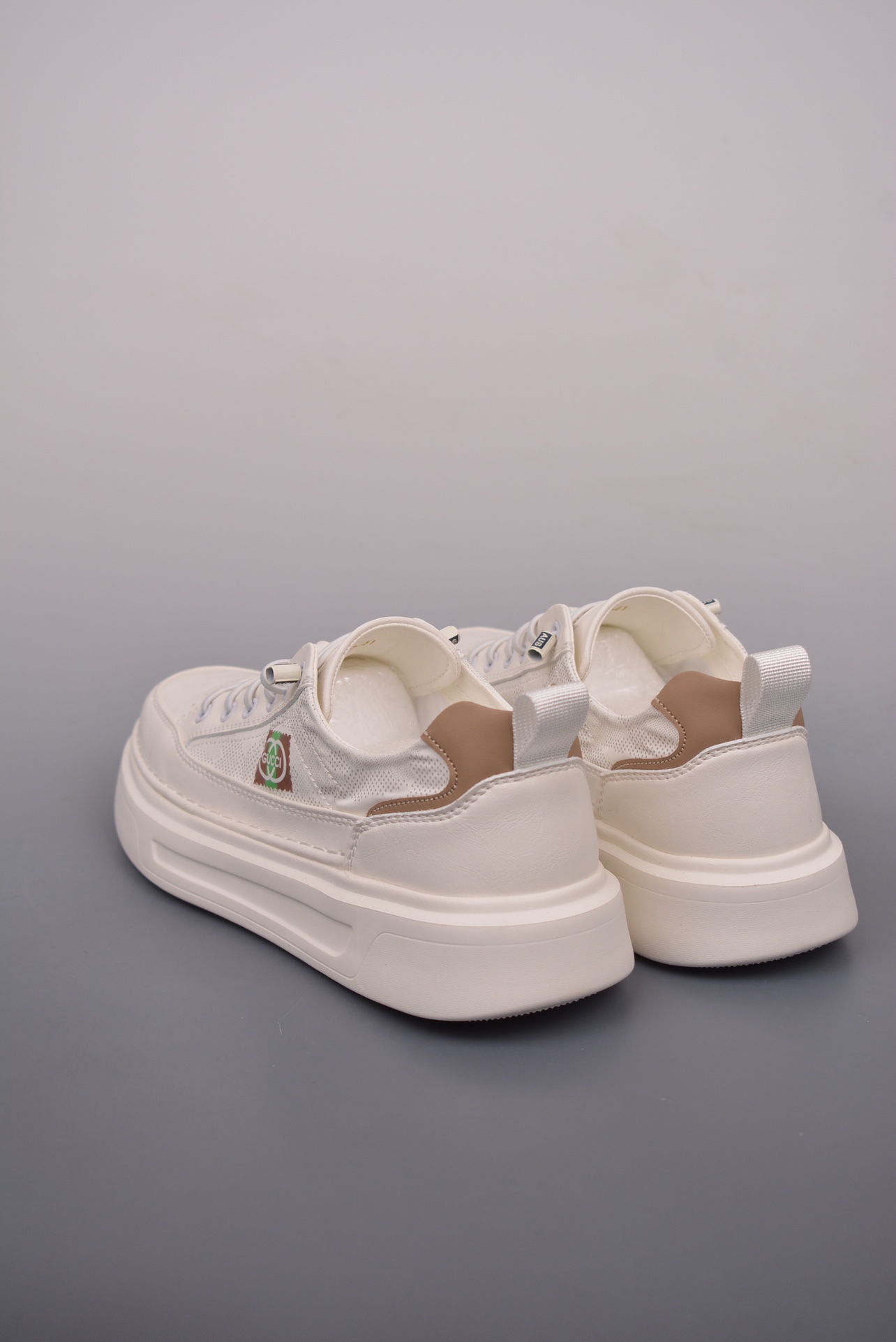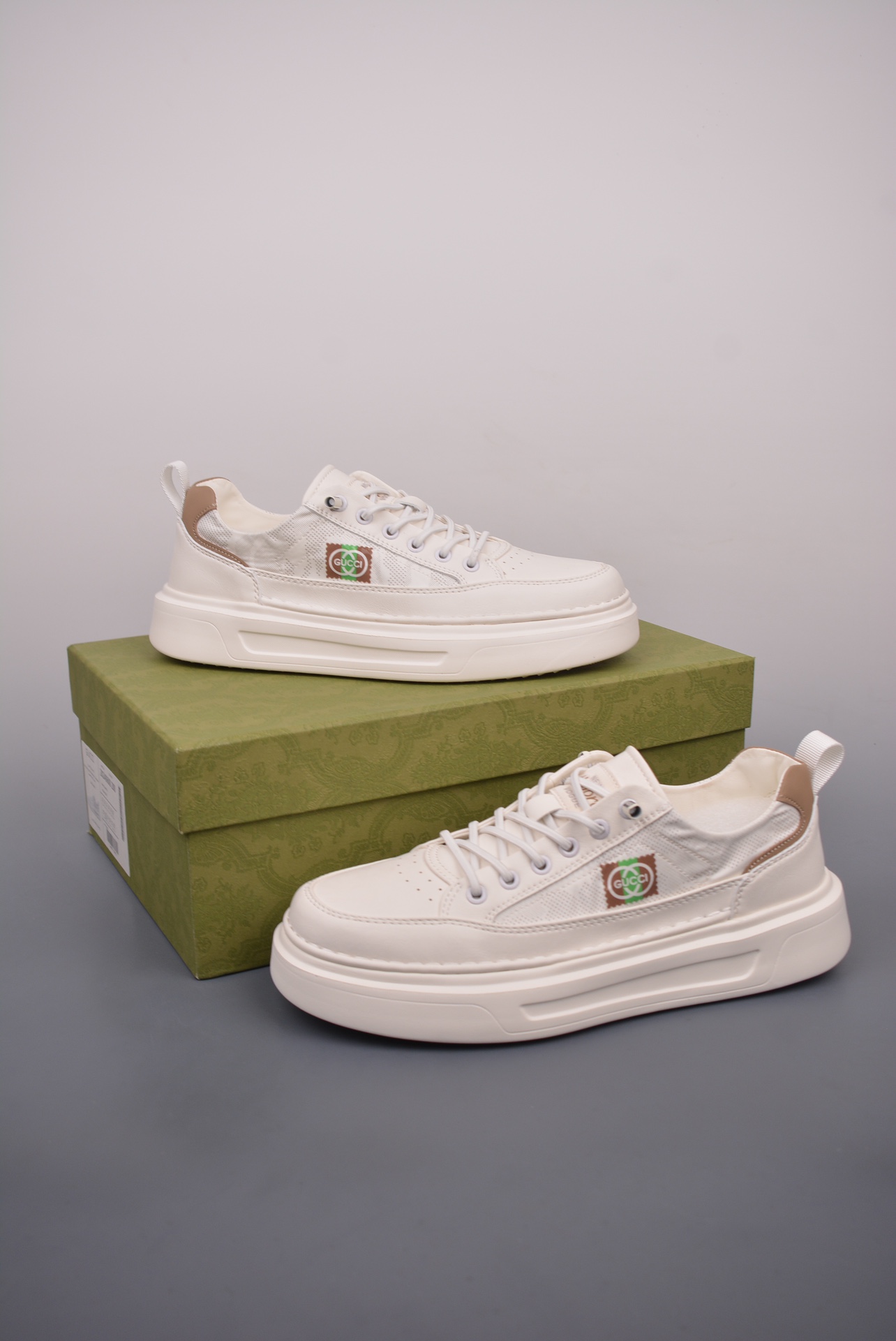 The upper features signature Gucci aesthetics, combined with geometric lines and color blocks, creating a layered, three-dimensional effect and rich visual expression, effortlessly creating a high-fashion look.