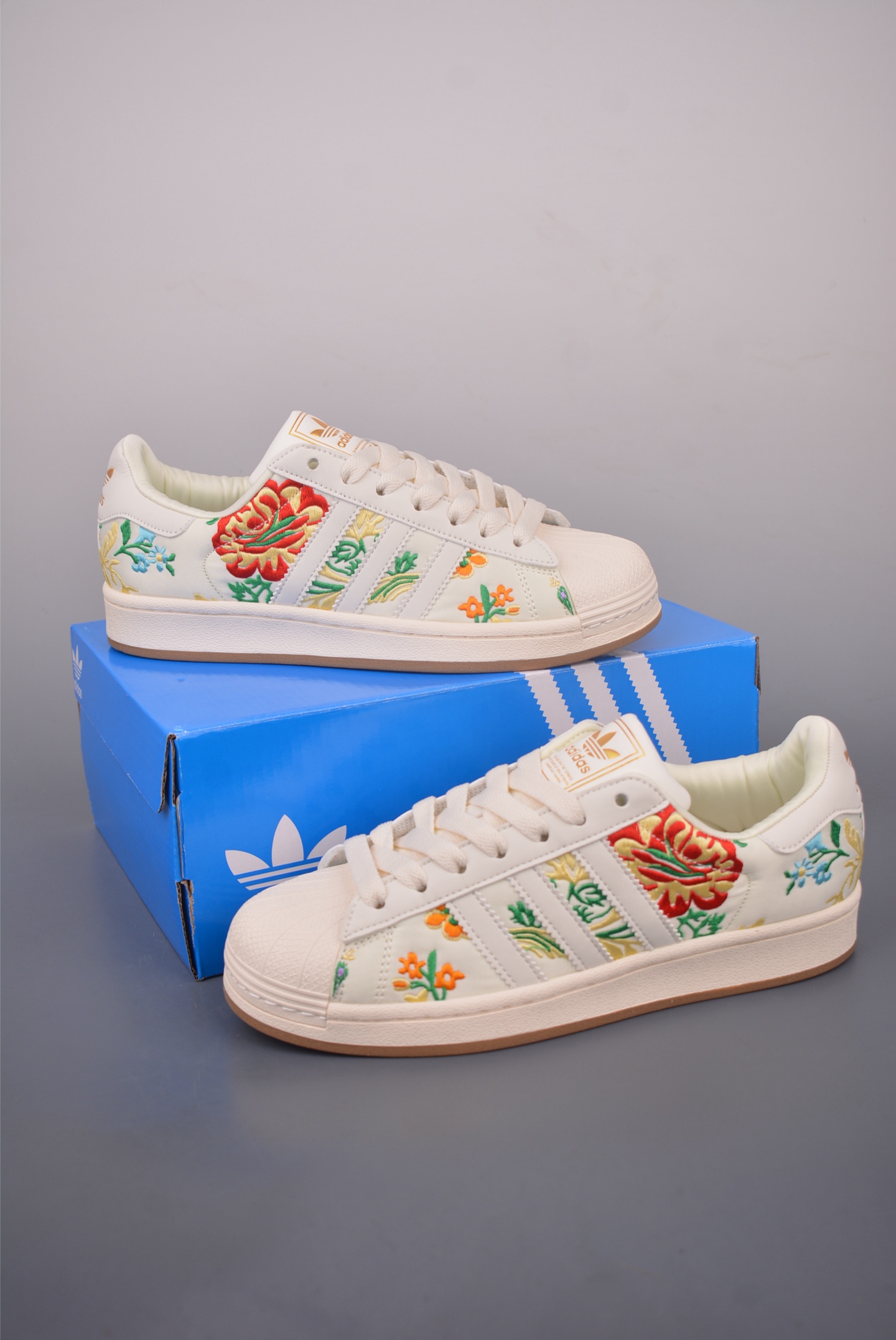 Whether paired with jeans, casual pants, or a dress, the adidas Originals Superstar floral embroidered cream version easily creates a unique and fashionable look. More than just a pair of shoes, it embodies streetwear culture, showcasing the wearer's unique appreciation for detail and aesthetics.