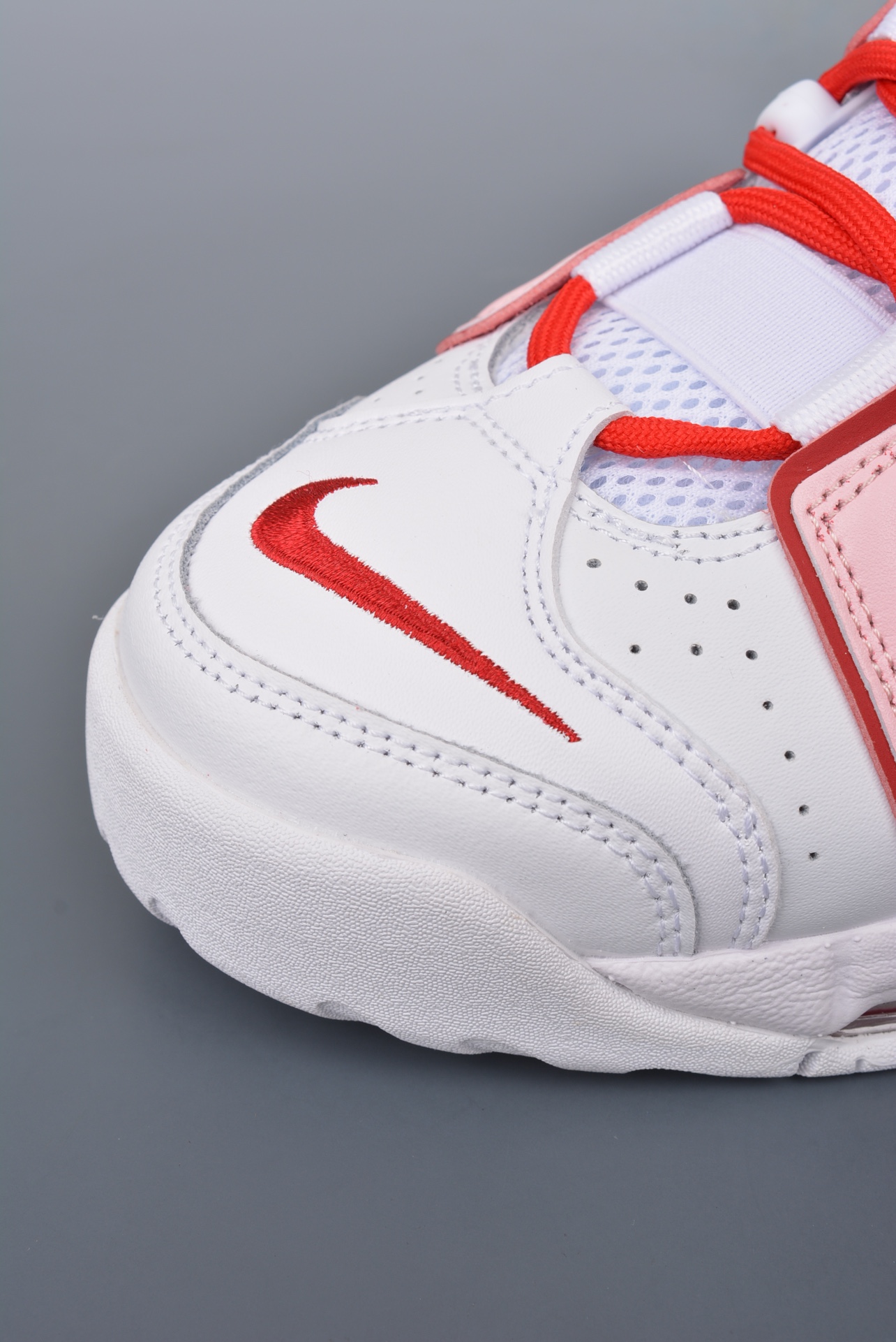 The "MORE AIR" lettering on the side of the shoe is a signature element of this shoe. The large, three-dimensional "AIR" lettering continues the classic Uptempo style, creating a striking and eye-catching design. This design not only reflects the history of the sneaker but also highlights the shoe's individuality and design. The overall design is bold and avant-garde, brimming with streetwear chic.
