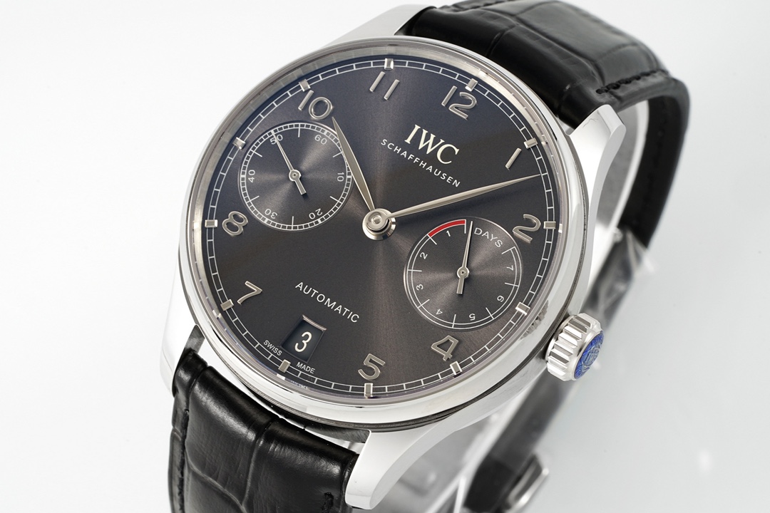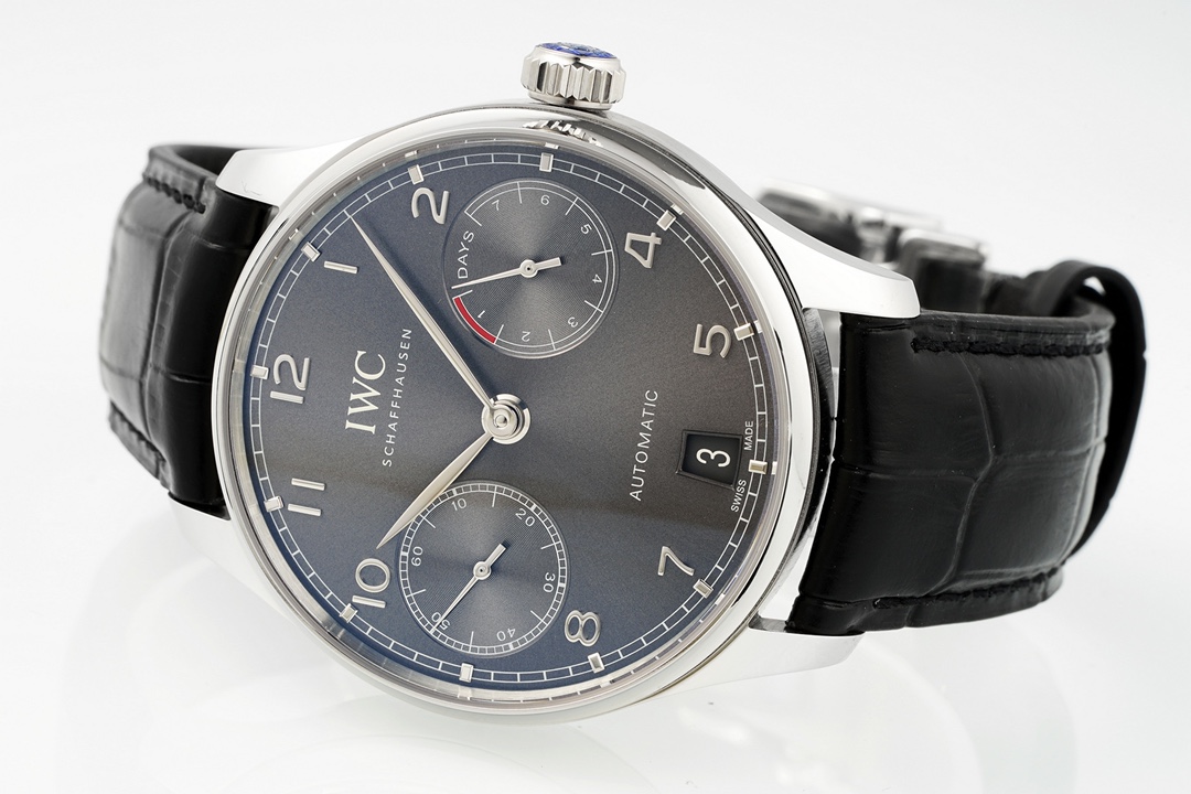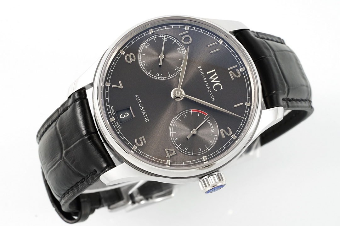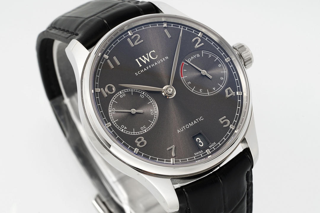 A perfect fusion of classic and modern, embodying a gentleman's style. The IWC Portugieser collection is renowned for its minimalist yet precise design. This gray dial model continues the collection's elegant DNA, showcasing a unique allure of understated luxury with its calming metallic finish and superior mechanical performance.