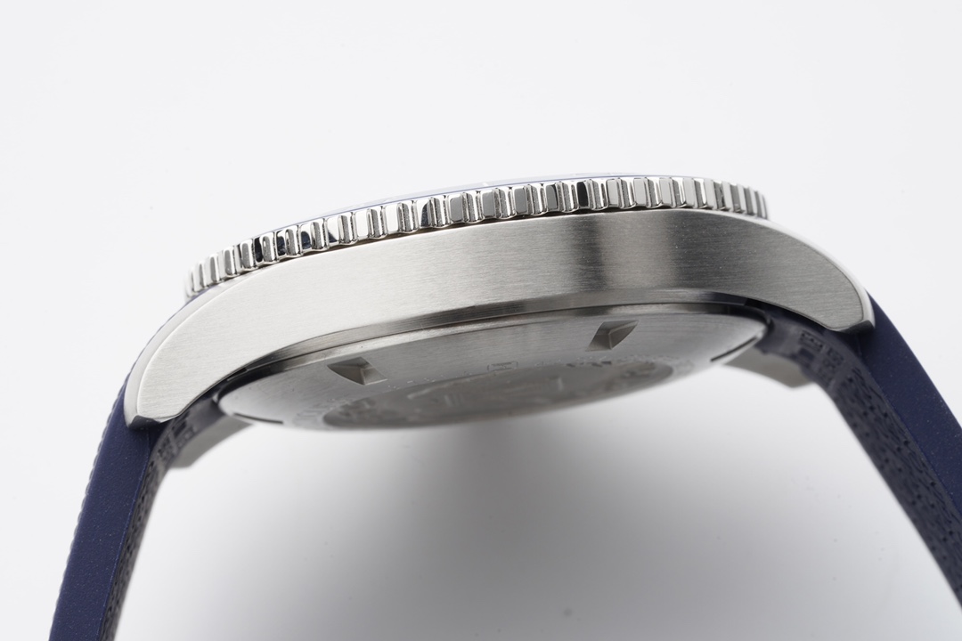 This 39mm men's watch features a durable stainless steel case and a blue ceramic unidirectional rotating bezel, creating a sturdy and wear-resistant look with an understated yet profound metallic finish. The blue dial and matching rubber strap complement each other, embodying the pure and calm beauty of the ocean. Three-dimensional numerals and luminous hour markers, paired with rugged hands, ensure clear readability, showcasing the professional diver's style.
