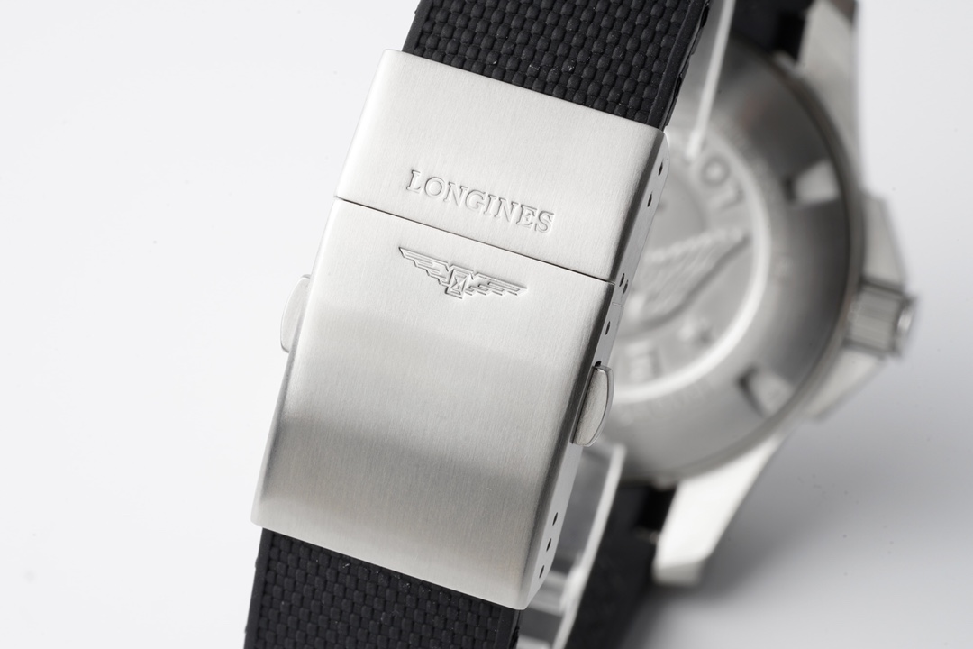 The dial boasts a clear, elegant layout, with luminous hour markers and bold hands, ensuring legibility in darkness or deep underwater. A date window at 3 o'clock ensures both practicality and aesthetics. Powered by a genuine Longines Swiss automatic mechanical movement, it delivers stable and precise performance, embodying the brand's century-old mechanical charm.