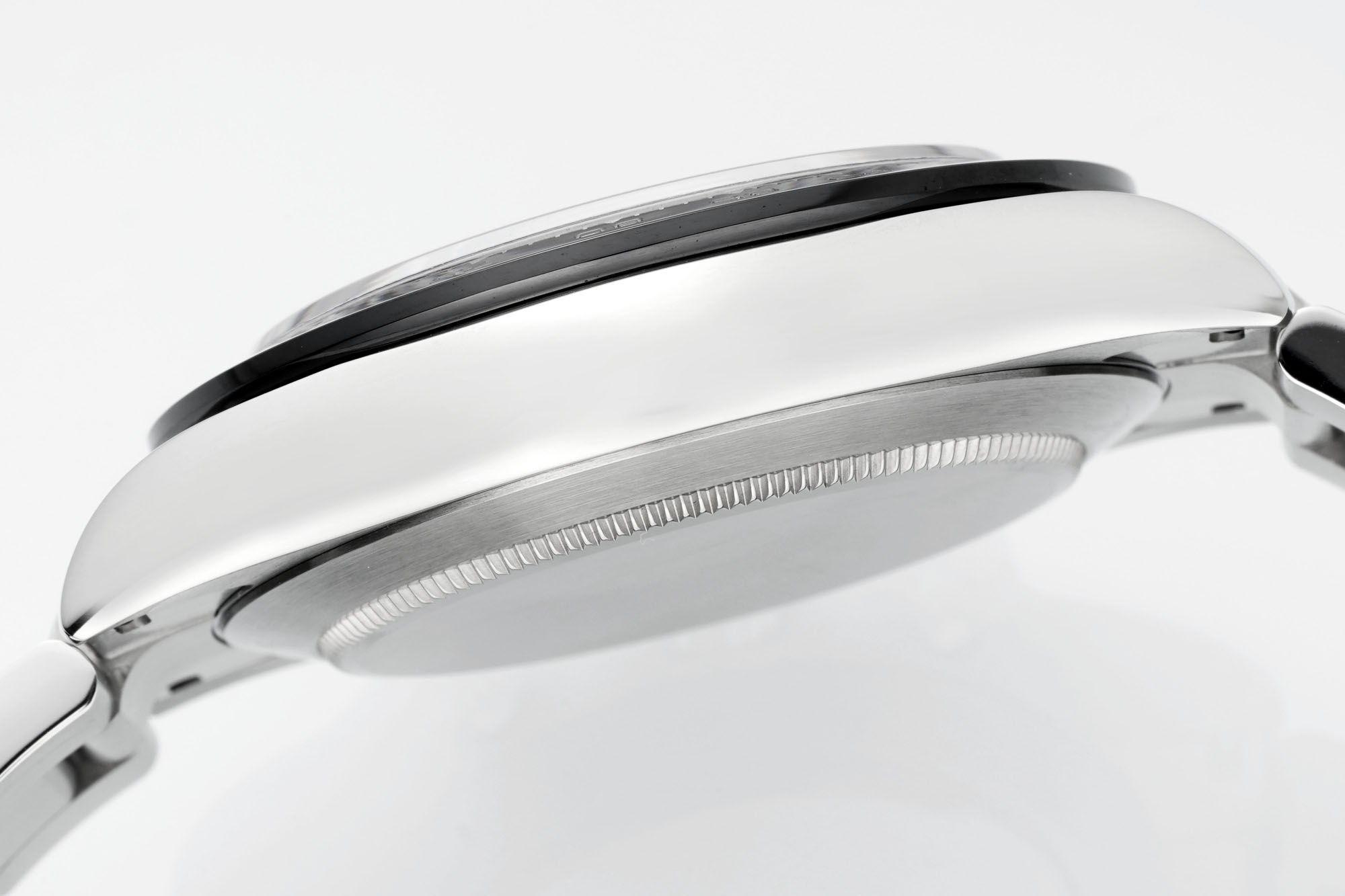 100m water resistant men's watch, Swiss watch, 40mm black dial, Oystersteel case, Oystersteel strap