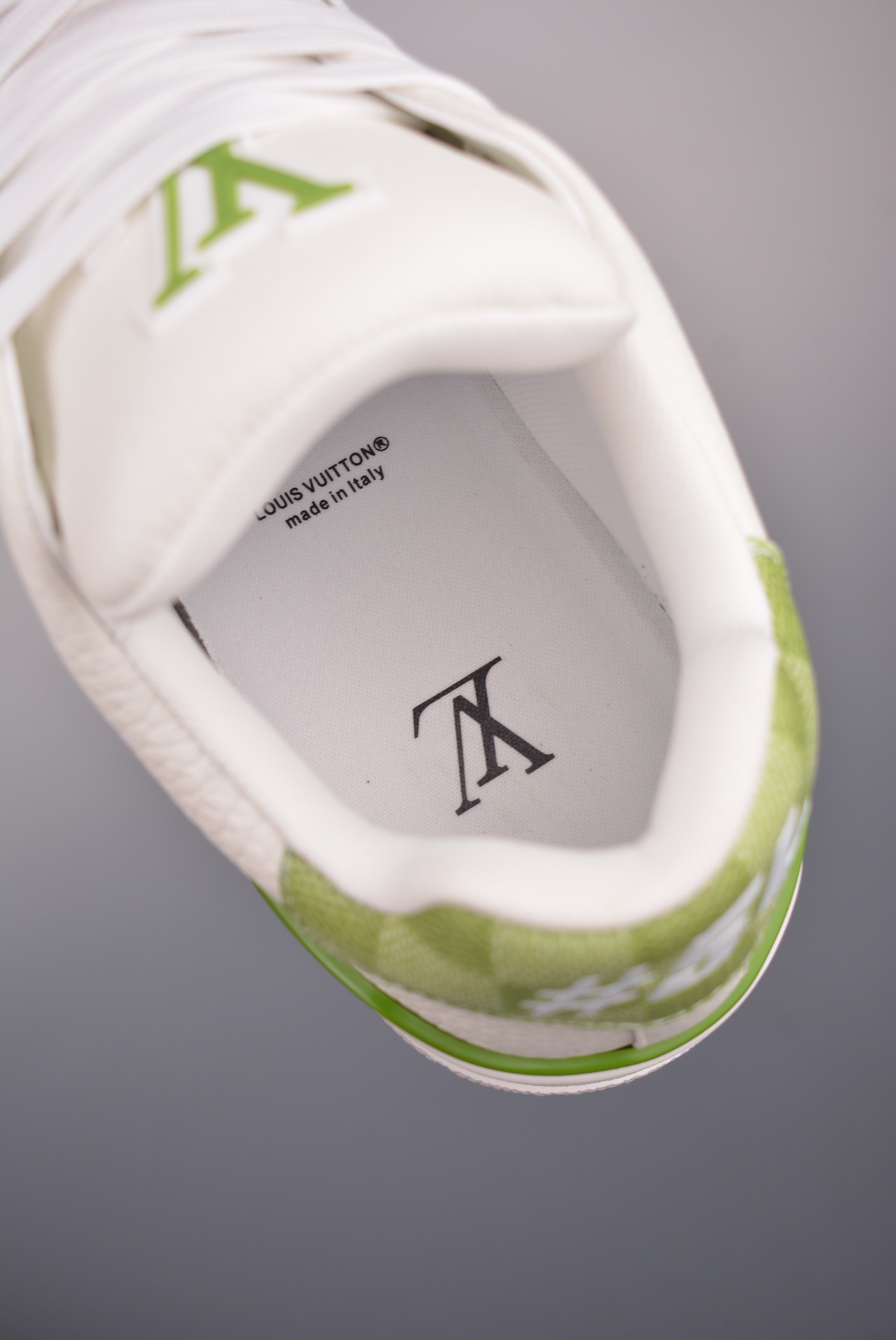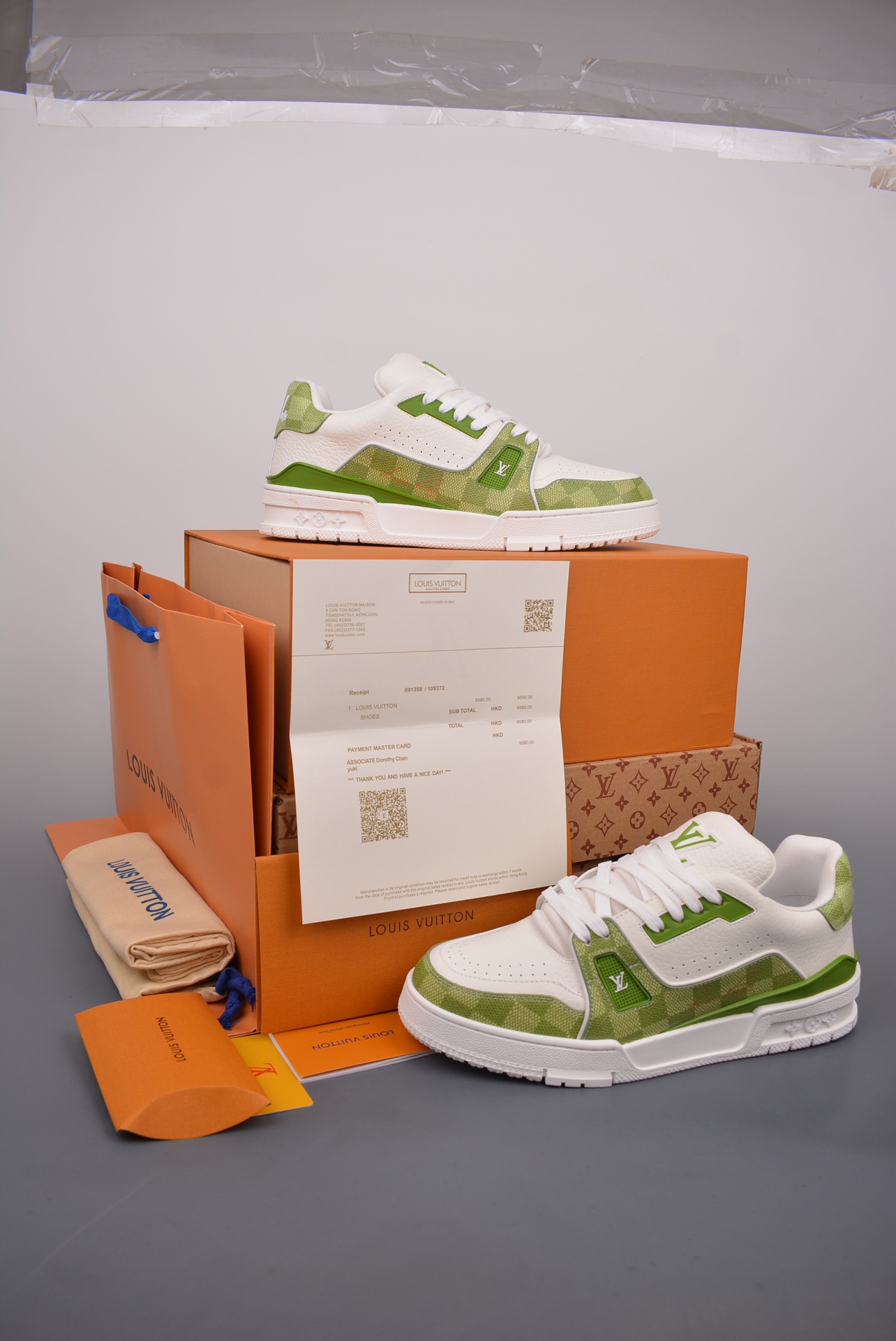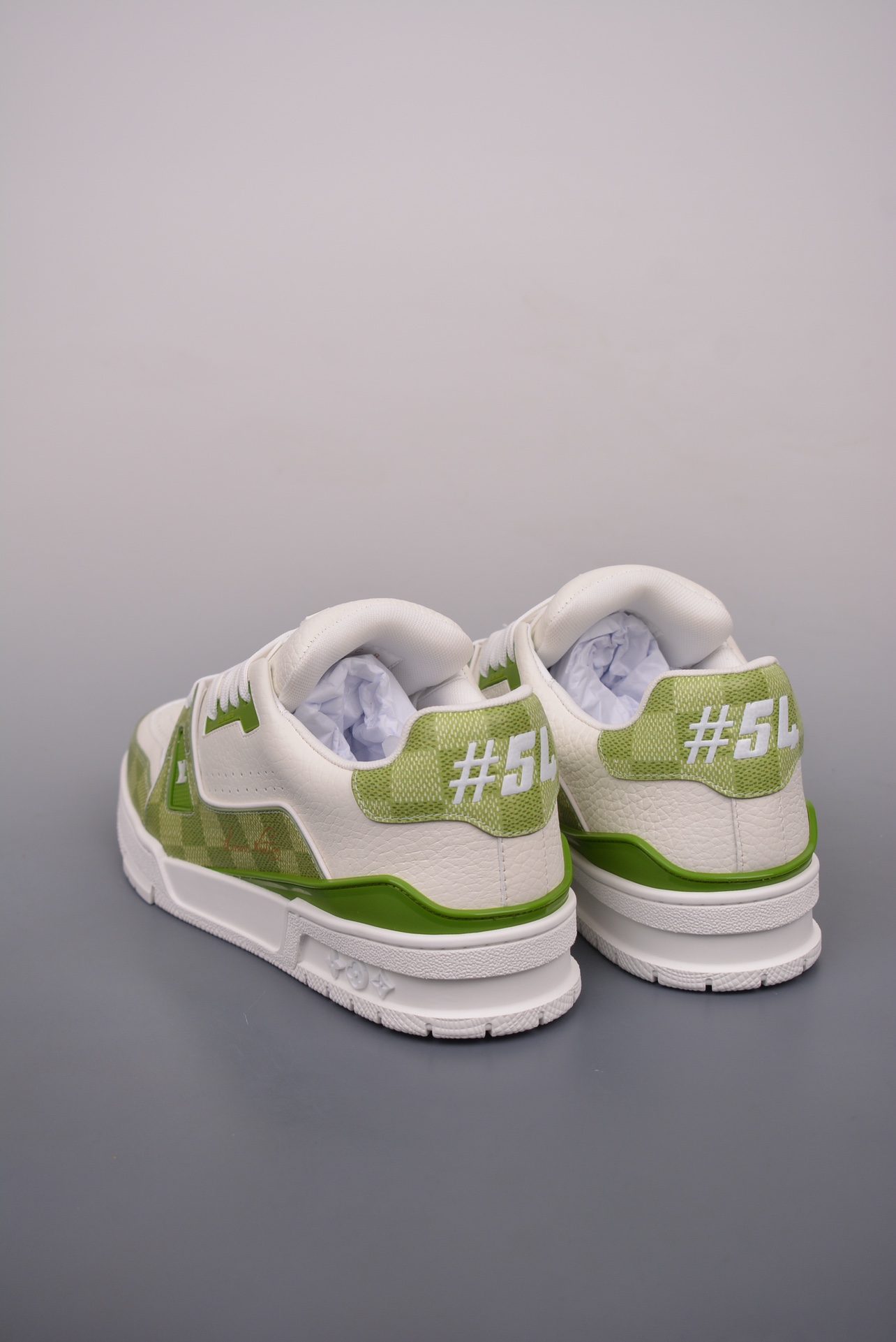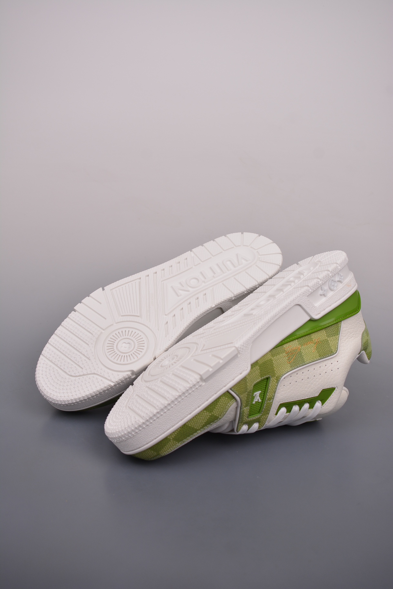 In summary, this 2021s LV Trainer limited edition collaboration is a sneaker that blends premium materials, exquisite craftsmanship, and modern fashion. Its unique color scheme and detailed design make it stand out in the market, making it the perfect choice for both luxury and comfort.