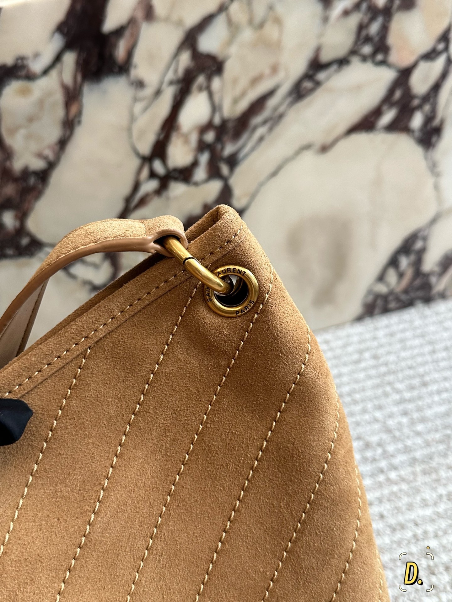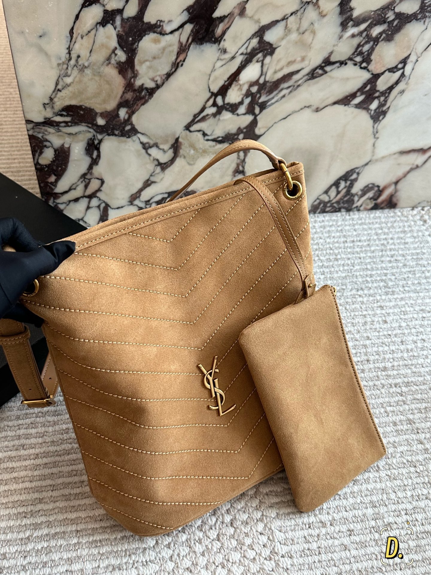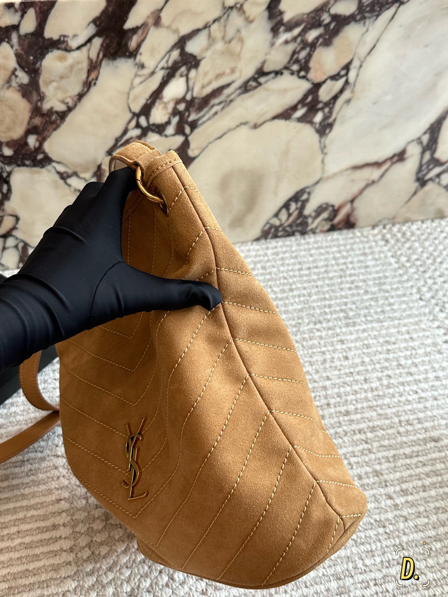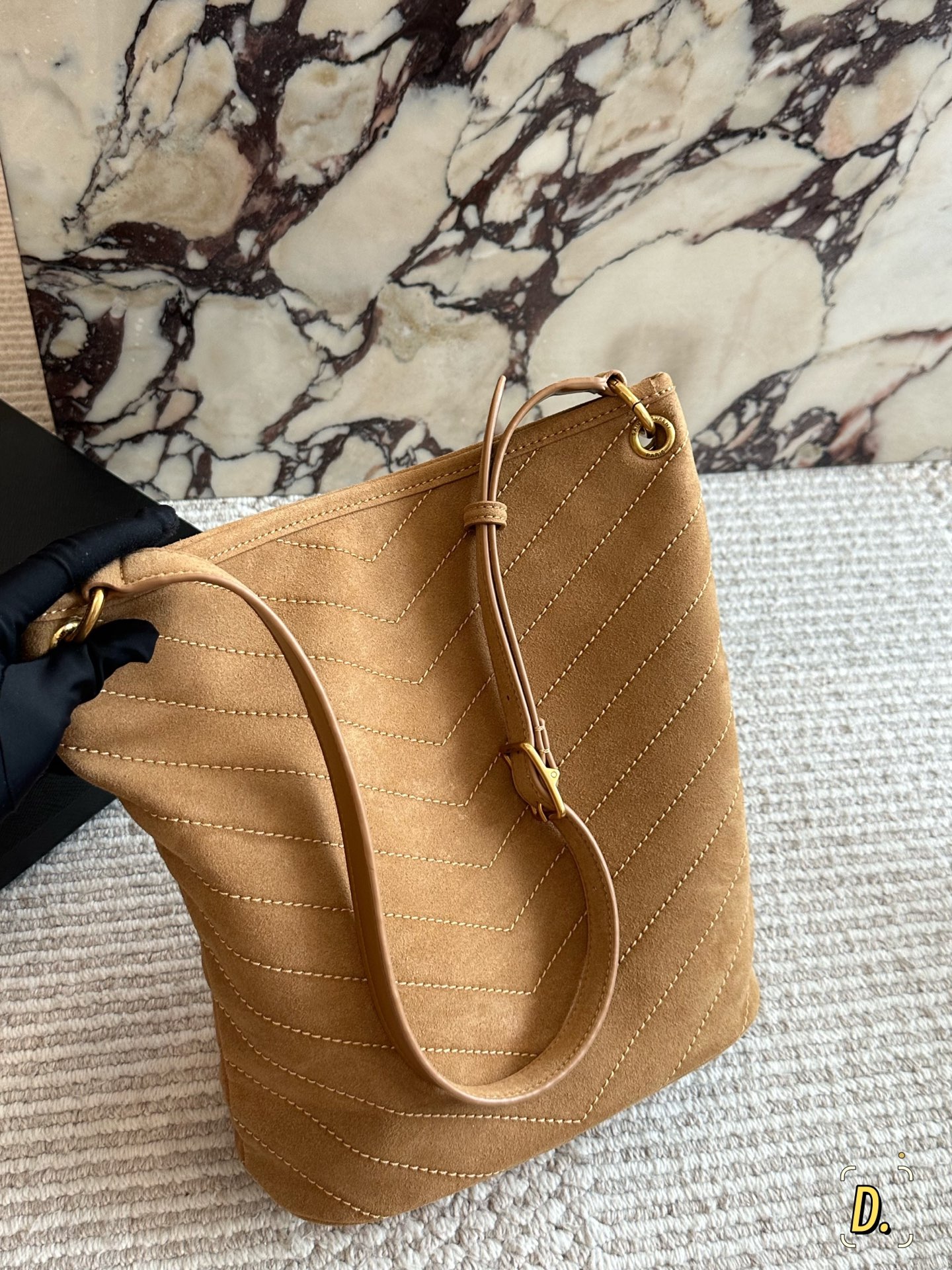 SAINT LAURENT Niki Herringbone Quilted Calfskin Bucket Shoulder Bag Regular Women's Caramel