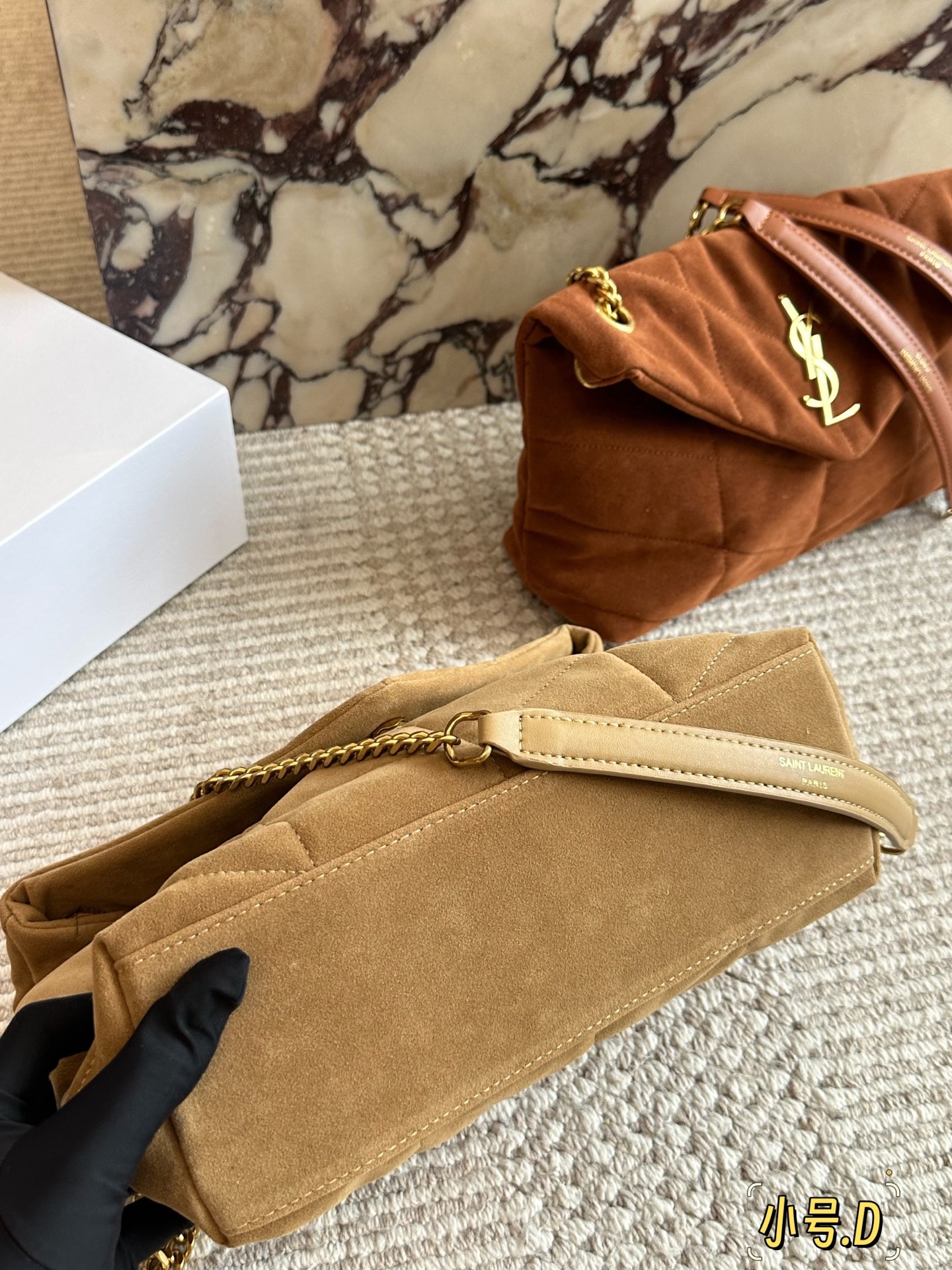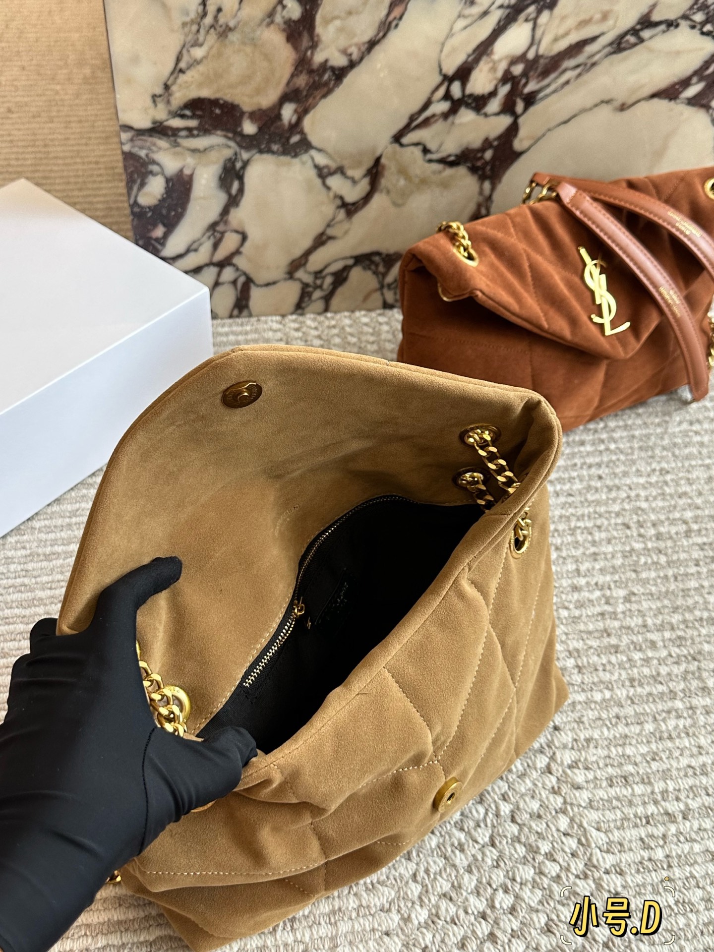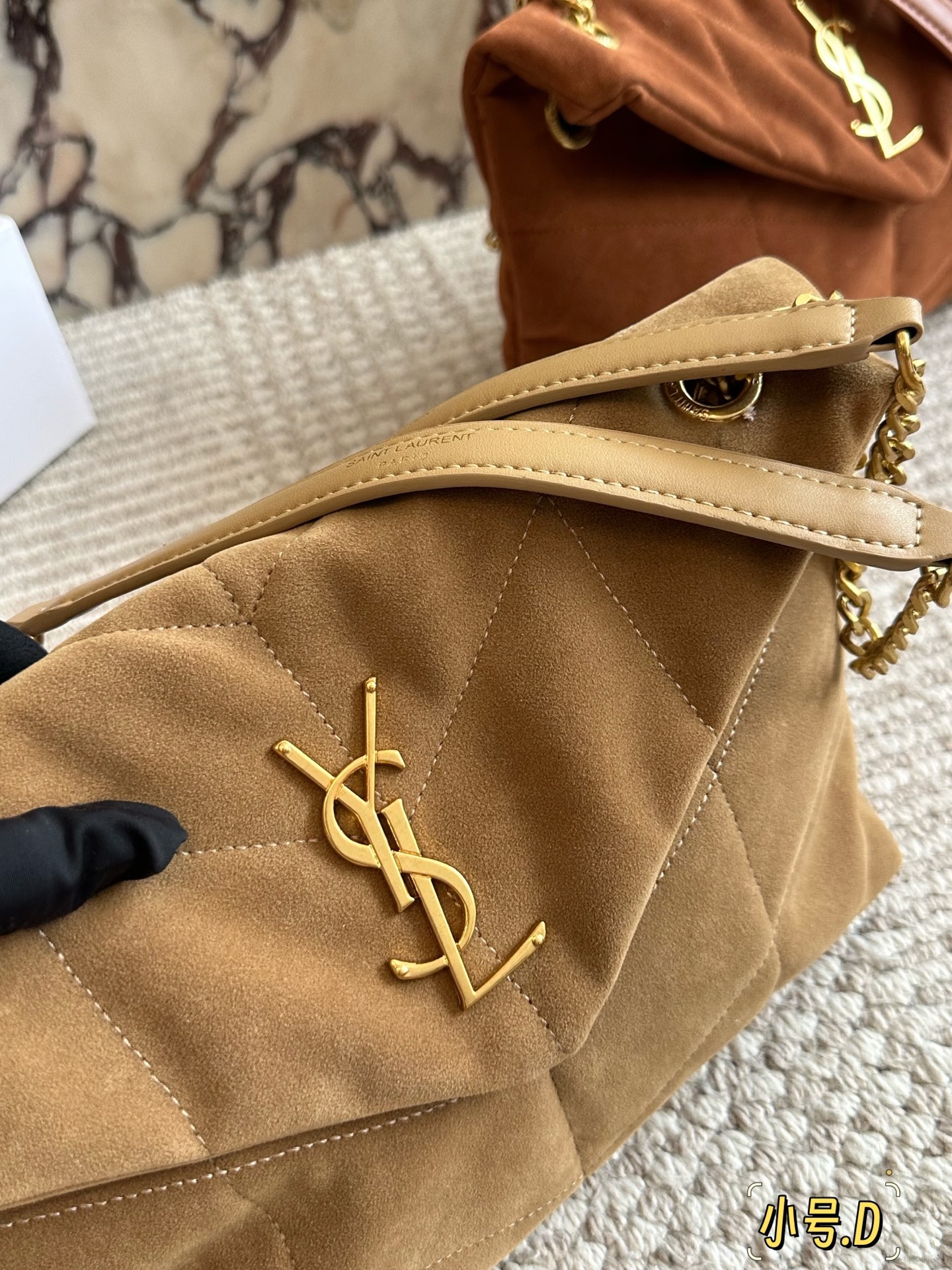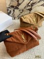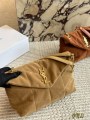 This SAINT LAURENT YSL Puffer handbag cleverly combines classic V-shaped quilting with soft calfskin, creating a rich, three-dimensional feel and a luxurious feel. Its sleek lines and rounded silhouette create a cloud-like softness, yet retain the brand's signature structural aesthetic.