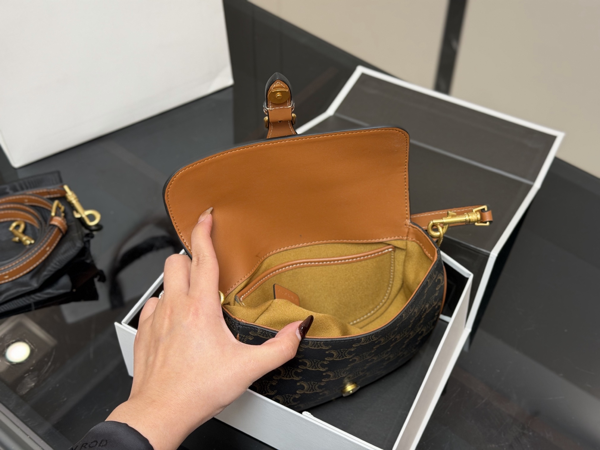 The iconic saddle silhouette, with its elegant curves and powerful lines, perfectly embodies CELINE's signature calm and sophisticated aesthetic. With a touch of retro chic, this bag instantly evokes a relaxed, effortless vibe, creating a sense of effortless elegance.