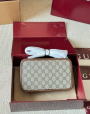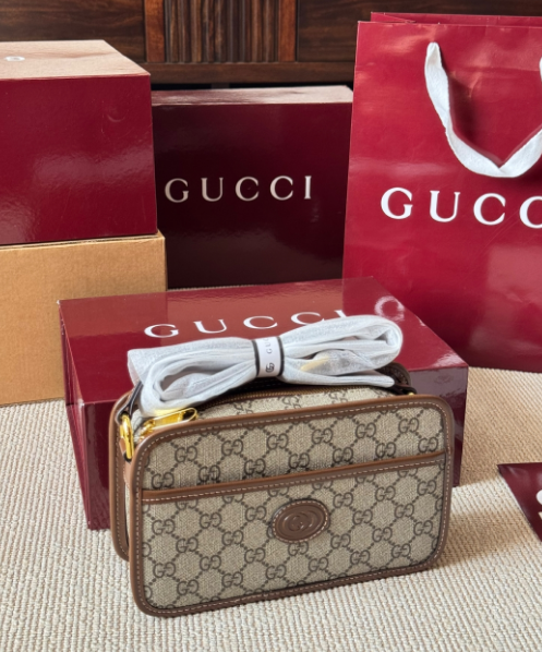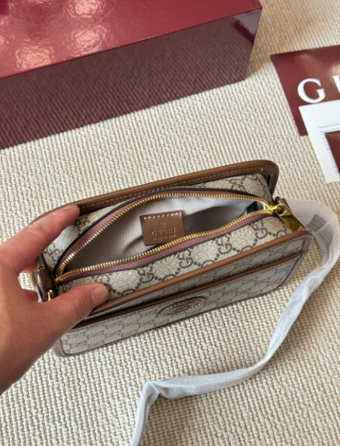 Gucci's classic monogram logo is perfectly combined with modern design. This burgundy and brown canvas bag combines style and practicality, perfect for use as a toiletry bag, travel bag, or elegant clutch. Crafted from canvas with GUCCI's signature GG monogram print and fine leather, the unique color combination of burgundy and brown exudes a rich vintage vibe, showcasing luxury and sophistication.