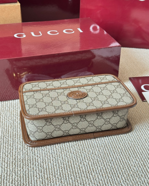 This compact and practical bag is perfect for carrying your daily essentials, such as cosmetics, toiletries, or small accessories. The zipper closure ensures secure storage and easy access. Whether traveling, on vacation, or for everyday use, this GUCCI clutch is versatile and perfectly balances style and functionality. Simple yet sophisticated, it's perfect for the modern woman who appreciates a high-quality lifestyle and is a must-have in your wardrobe.