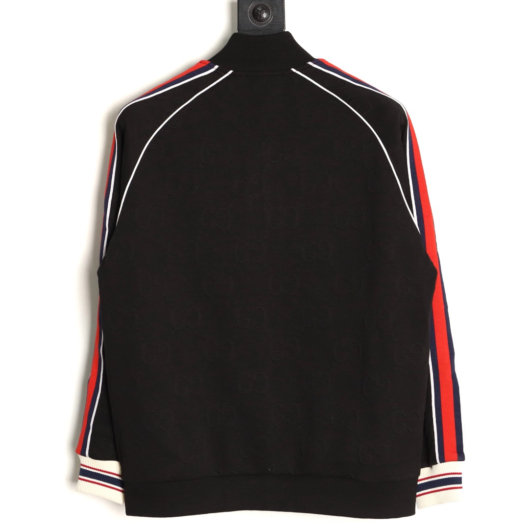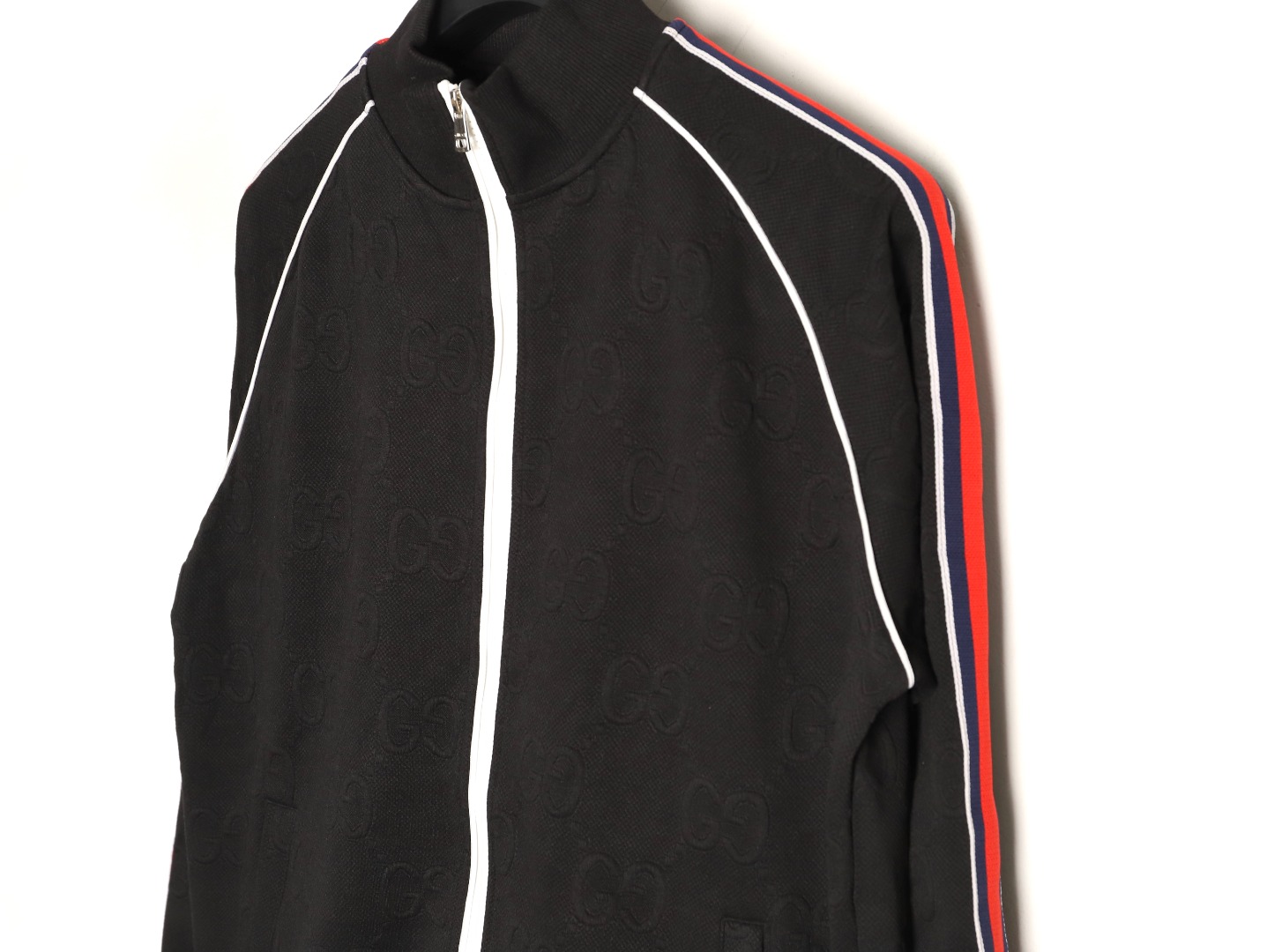GUCCI All-Over Double G Jacquard Red and Green Striped Webbing Suit Jacket (Stand-Up Collar Zipper)