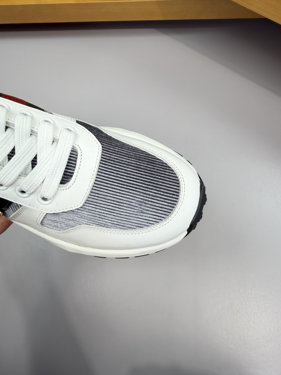 The shoe showcases meticulous craftsmanship in every detail, from the stitching to the material combination, ensuring it withstands close scrutiny.