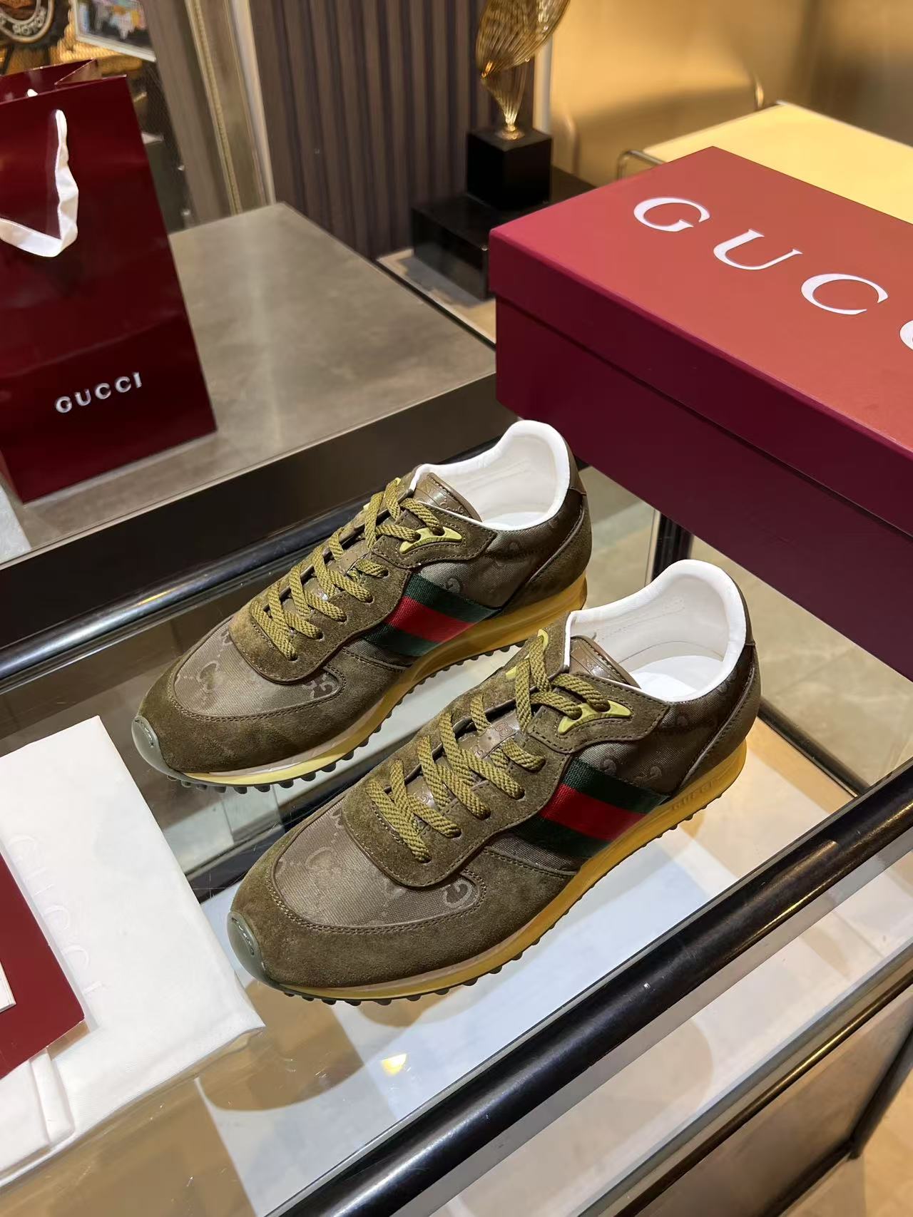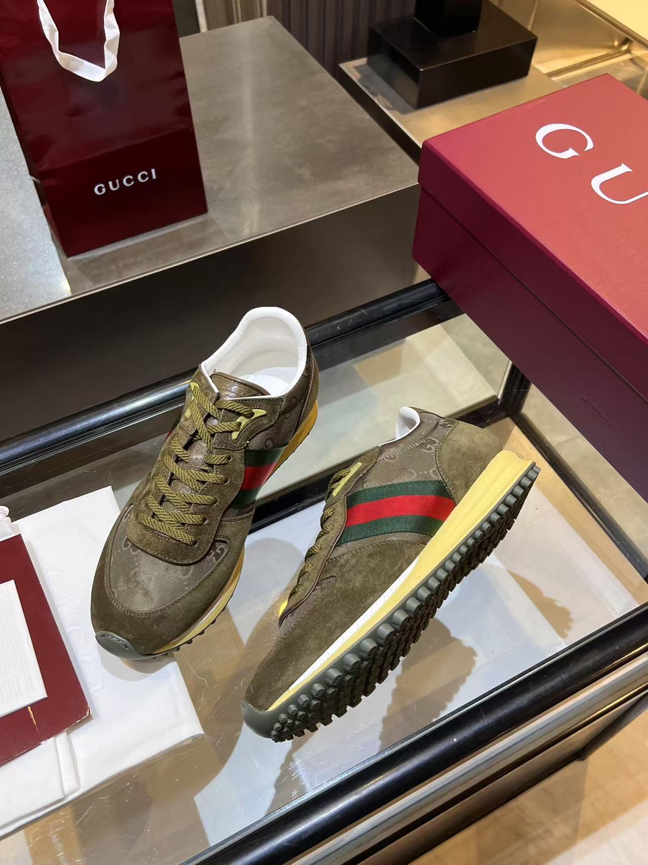 Gucci shoes are renowned for their distinctive designs and high-quality craftsmanship, blending fashion and luxury. The brand's diverse shoe offerings, including casual, formal, and athletic styles, often feature vibrant colors and the iconic Double G motif, showcasing a bold and individual style. Gucci's attention to detail culminates in shoes made from premium materials such as fine leather and fabrics, ensuring both comfort and durability. Whether paired with everyday attire or formal occasions, Gucci shoes add a unique touch of glamour to any outfit, making them a favorite among fashion enthusiasts.