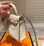 This HERMES Kelly 28 is crafted from premium Epsom leather, boasting a fine and tough texture, combining lightness with durability. The cream white (12 Nata) is gentle and elegant, showcasing feminine elegance while offering a pure and soft visual experience. Gold hardware fasteners embody luxury, while the details showcase meticulous craftsmanship.