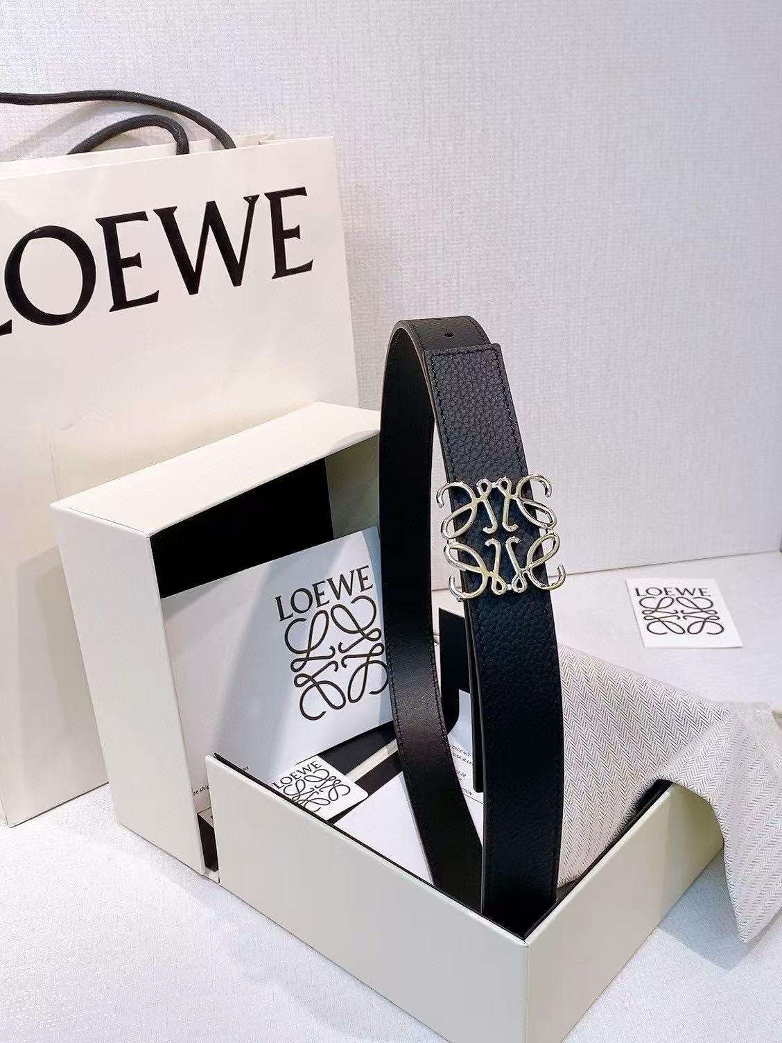 LOEWE is a Spanish luxury brand renowned for its exquisite craftsmanship and innovative designs. LOEWE belts often feature a minimalist yet artistic style, often featuring the brand's signature "Anagram" pattern and distinctive buckles, reflecting the brand's meticulous attention to detail. Each belt is crafted from high-quality leather, ensuring durability and comfort, making it suitable for a variety of occasions. Whether paired with casual or formal attire, LOEWE belts add a unique touch of style to any outfit, making them a favorite among fashion enthusiasts.