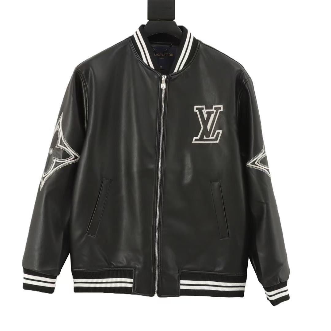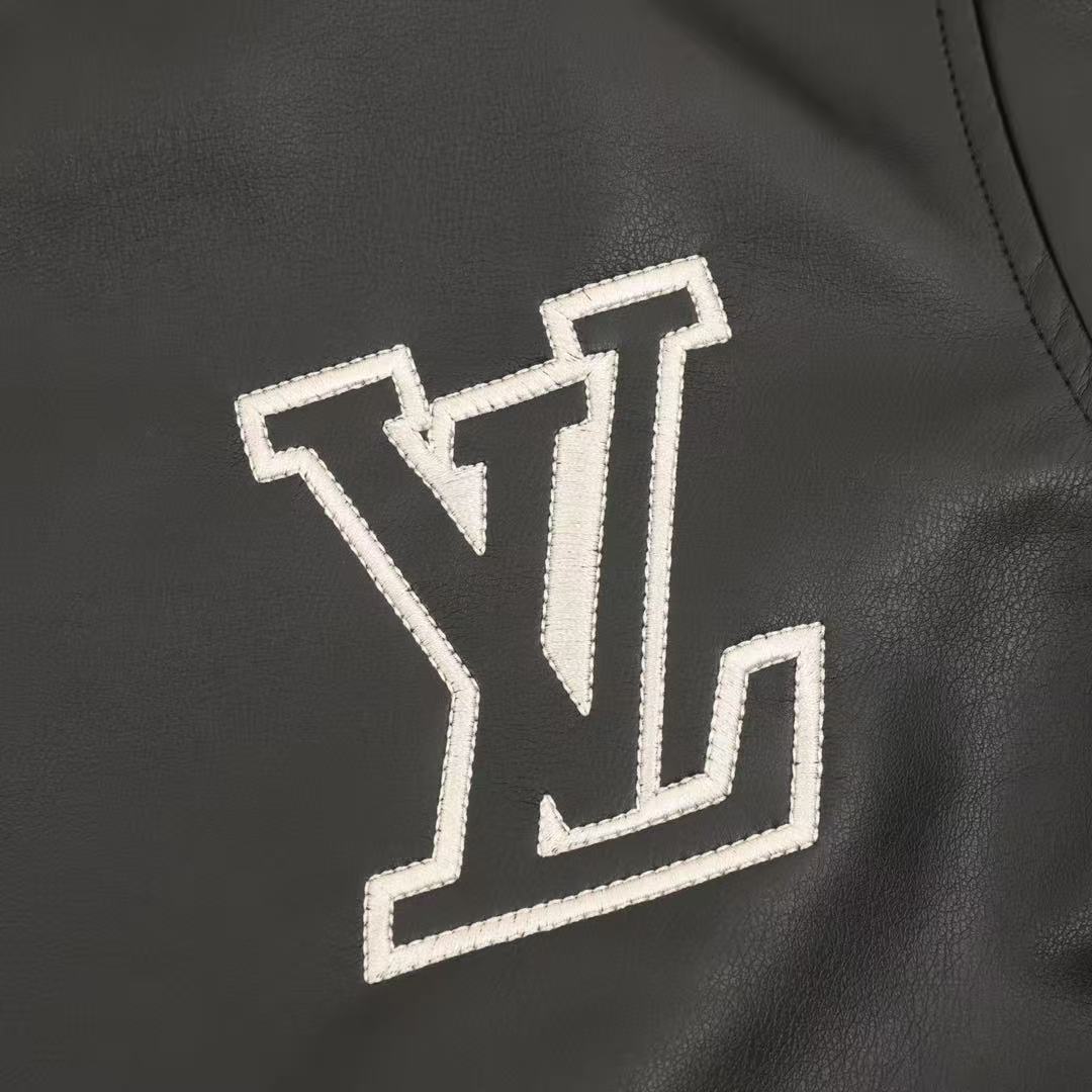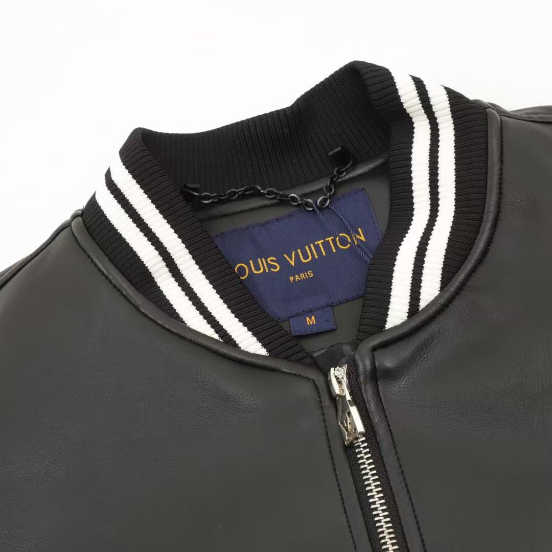 A classic leather jacket with a patchwork Louis Vuitton monogram embossed pattern. A versatile style for both men and women.