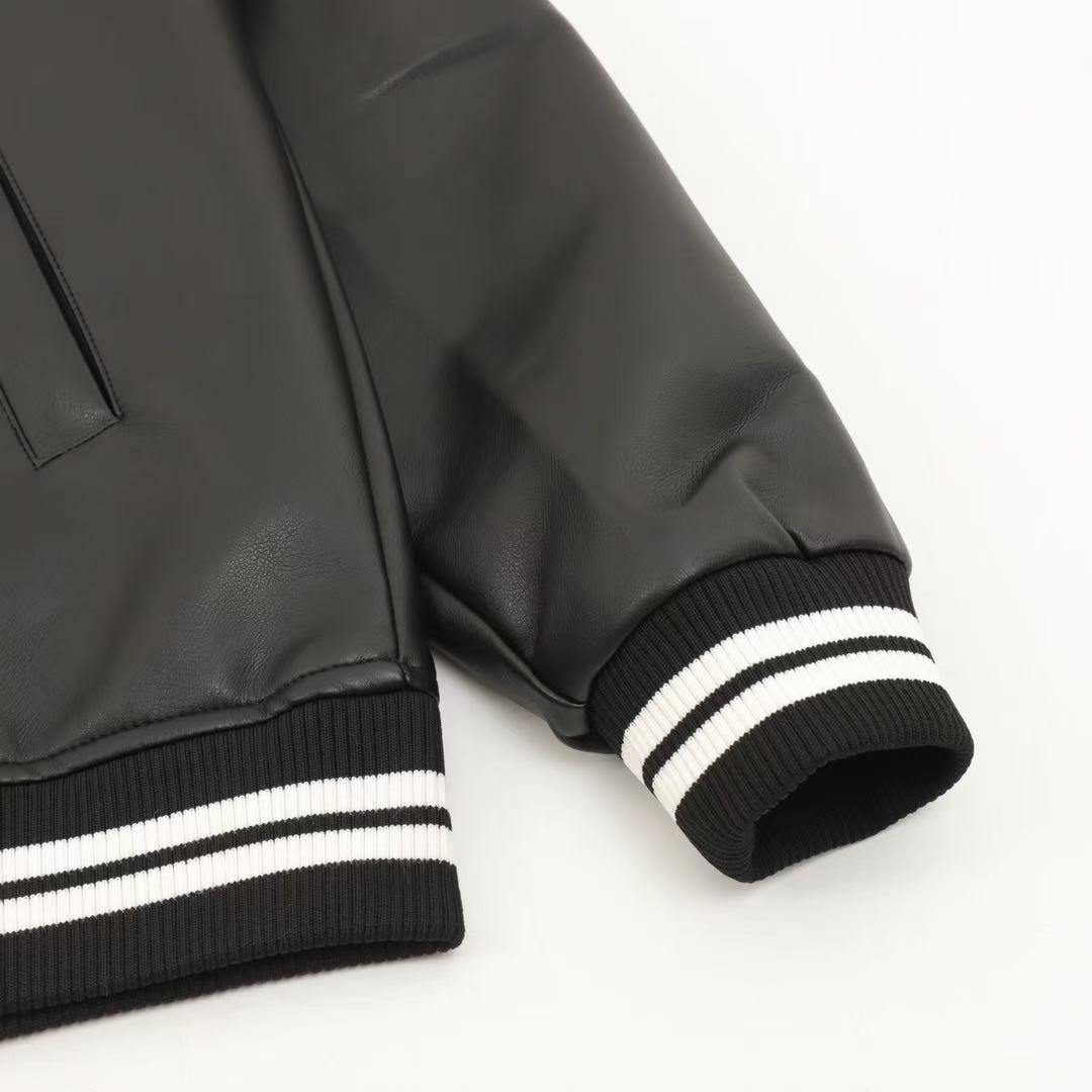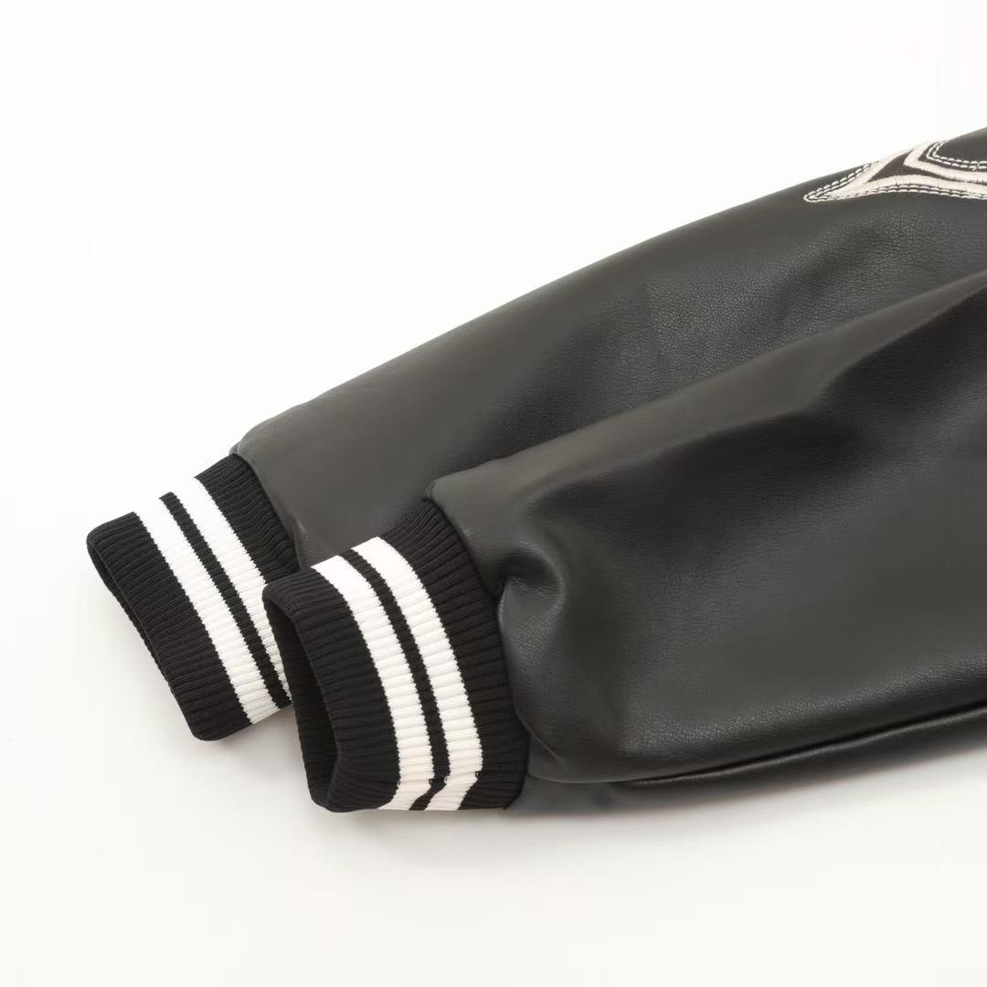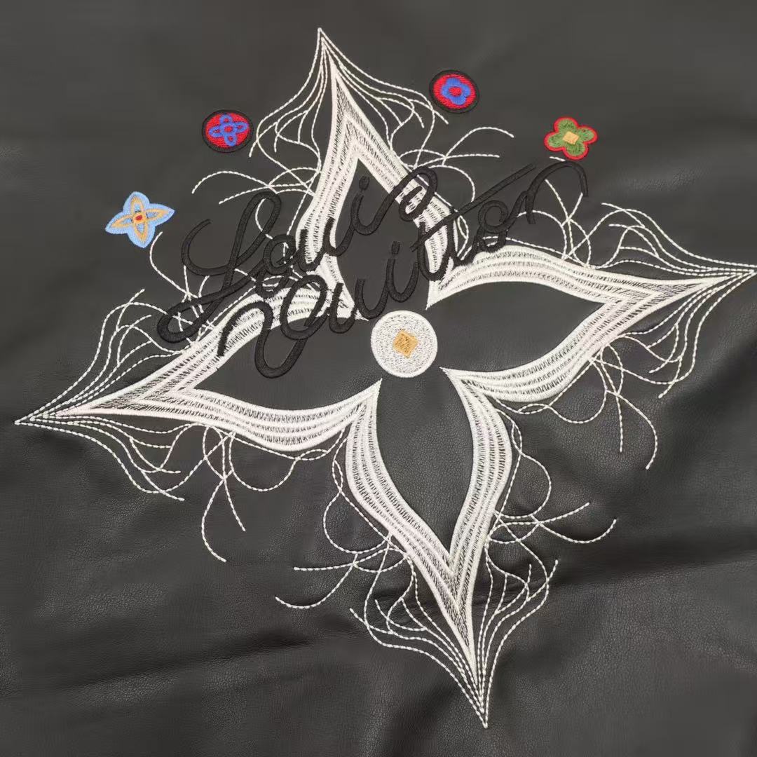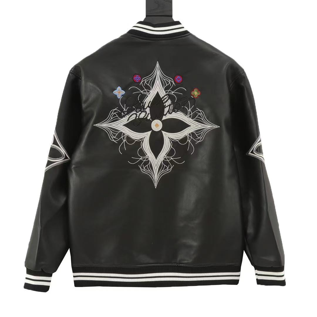 A classic leather jacket with a patchwork Louis Vuitton monogram embossed pattern. A versatile style for both men and women.