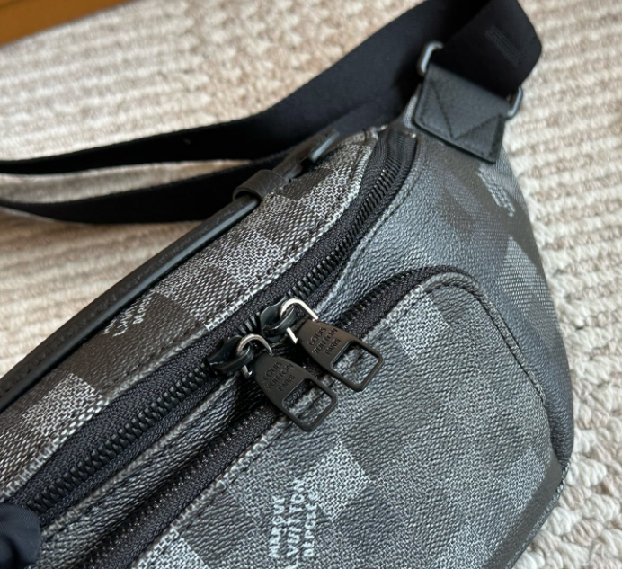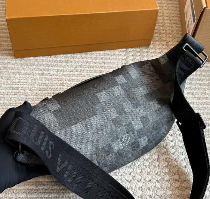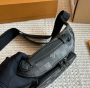 This LOUIS VUITTON RUSH chest bag, crafted from durable dark grey canvas and featuring the brand's classic design elements, exudes understated yet sophisticated urban elegance. Its compact and lightweight design is perfect for carrying everyday essentials.