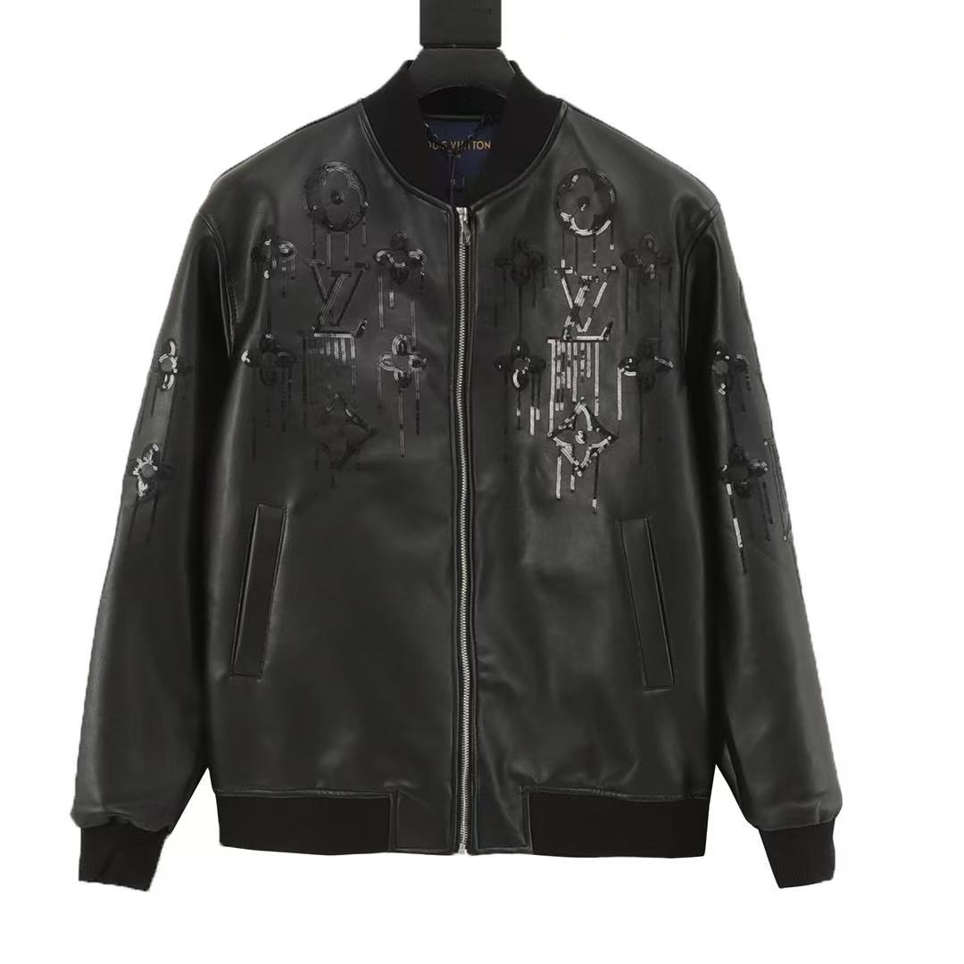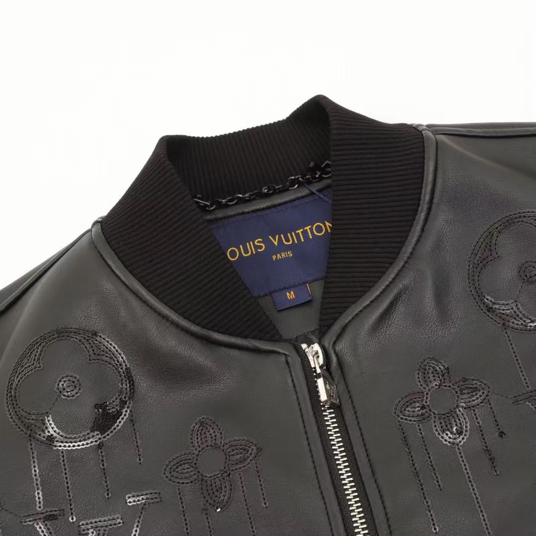 This model is made of high-quality leather and the classic Louis Vuitton logo is outlined on the chest, back and sleeves with shiny beads.