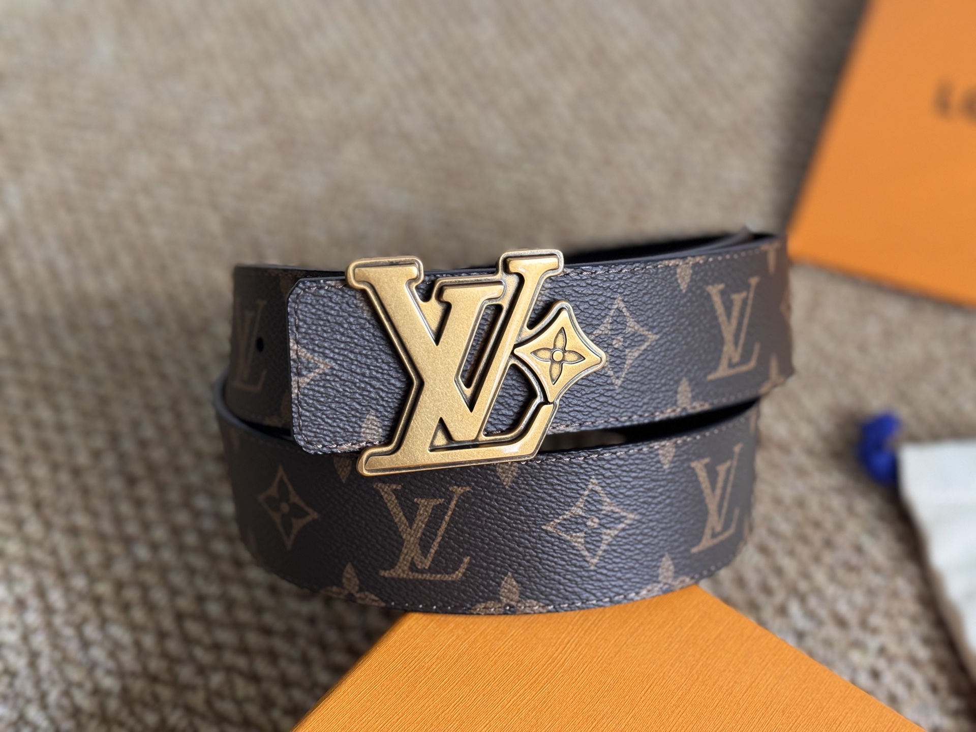 The distinctive LV Flower buckle cleverly blends the striking brand name with delicate florals, elevating the traditional symbol with a modern, artistic flair.