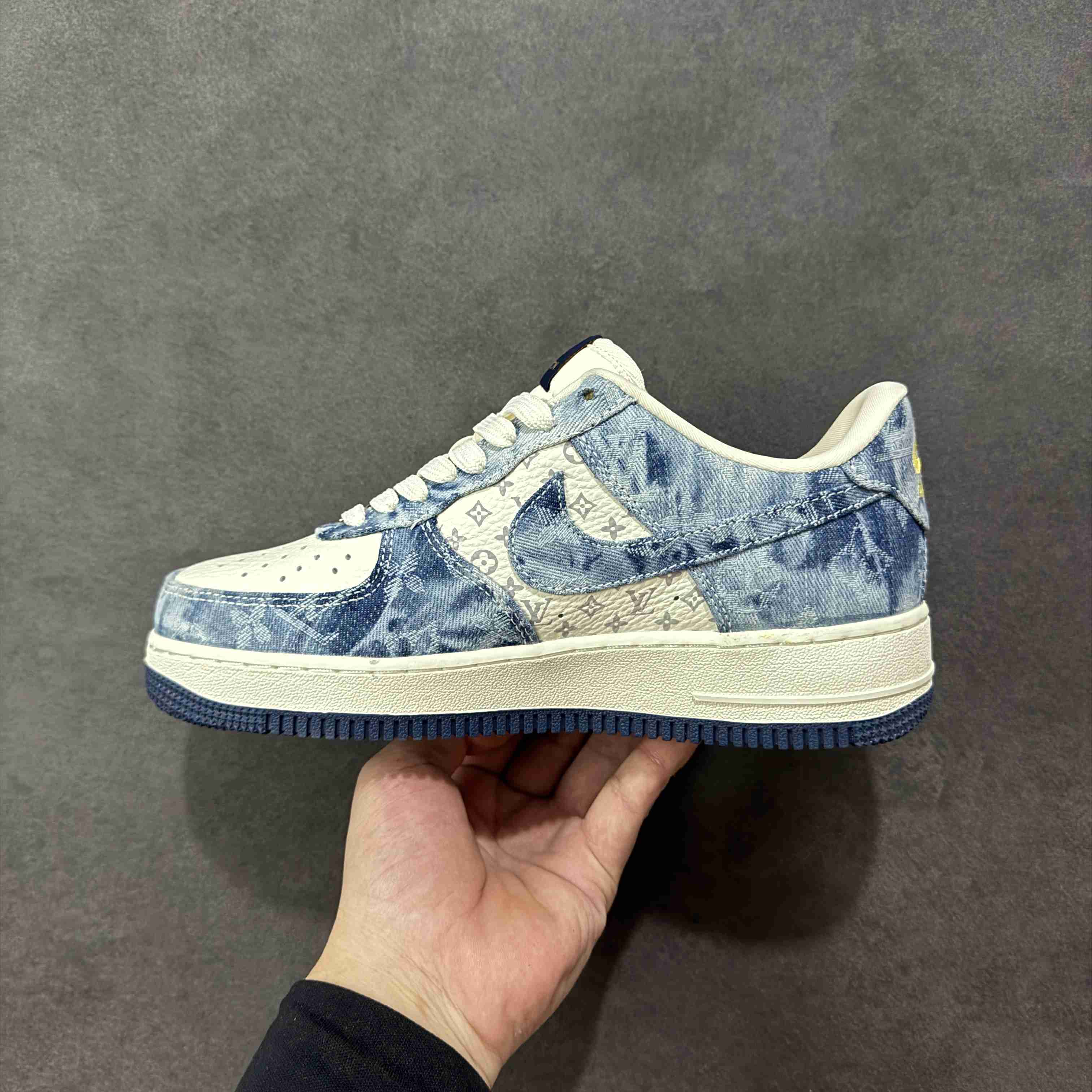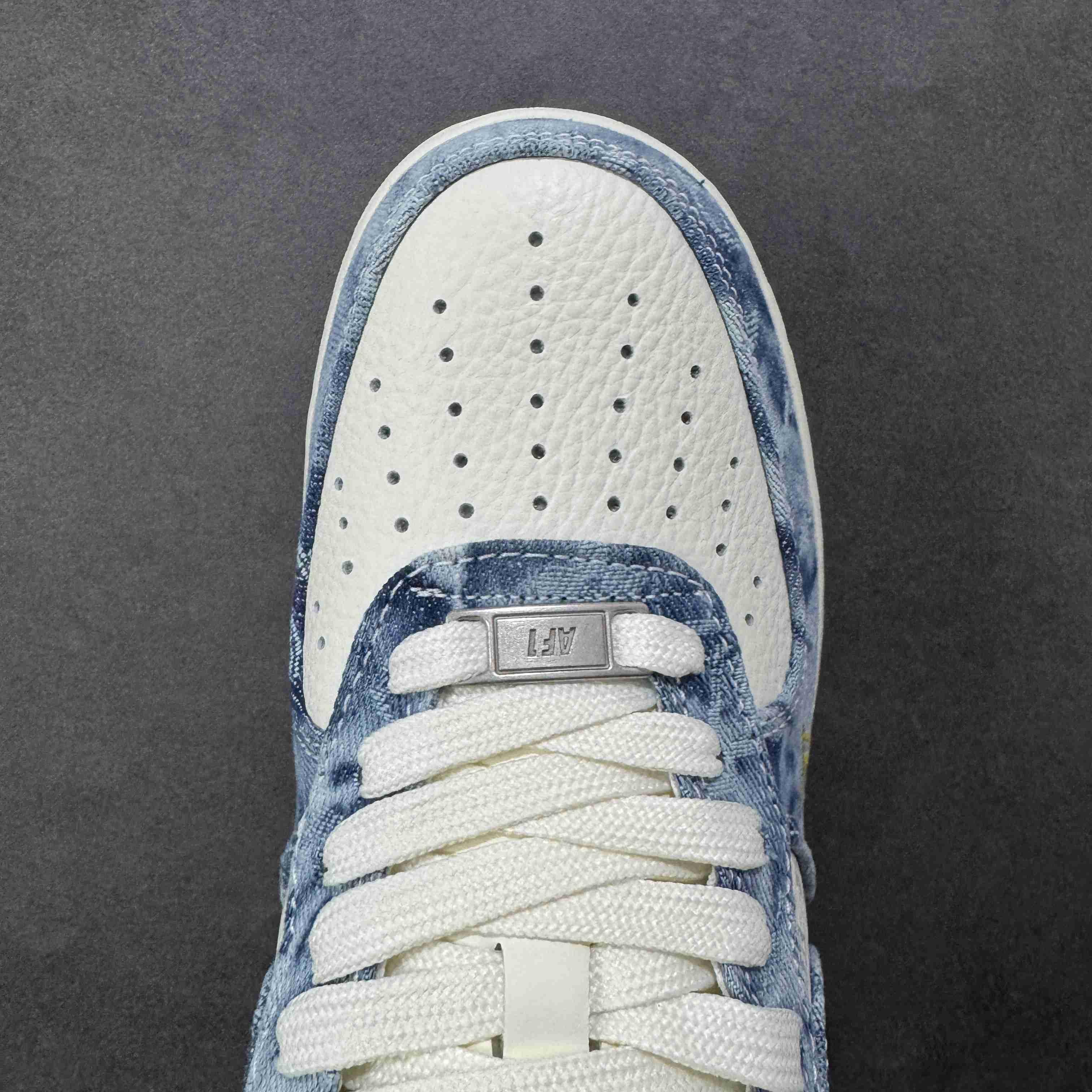 The Nike Air Force 1'07 Low LV Denim Blue is a limited-edition collaboration that blends classic and modern design, showcasing the unique collaboration between Nike and Louis Vuitton. Featuring a distinctive denim blue hue, the shoe combines exquisite materials with high-end fashion elements, embodying a fusion of avant-garde and elegant allure. The upper is crafted from high-quality denim for a comfortable and textured feel, while the natural texture of the denim lends the shoe a streetwear-inspired feel while retaining a luxurious feel. The signature LV graphic and Nike Swoosh embroidery on the upper add a touch of refined luxury. The sole maintains the classic Air Force 1 design, featuring a transparent rubber outsole for a comfortable feel and excellent traction. The midsole's air cushioning provides exceptional comfort and support, making it suitable for everyday wear and extended walks. This denim blue collaboration not only retains the classic look of the Nike Air Force 1, but also adds a touch of style and uniqueness through Louis Vuitton's clever design. Whether paired with streetwear or high-end fashion items, it can be easily controlled and becomes a dazzling choice in the shoe cabinet.