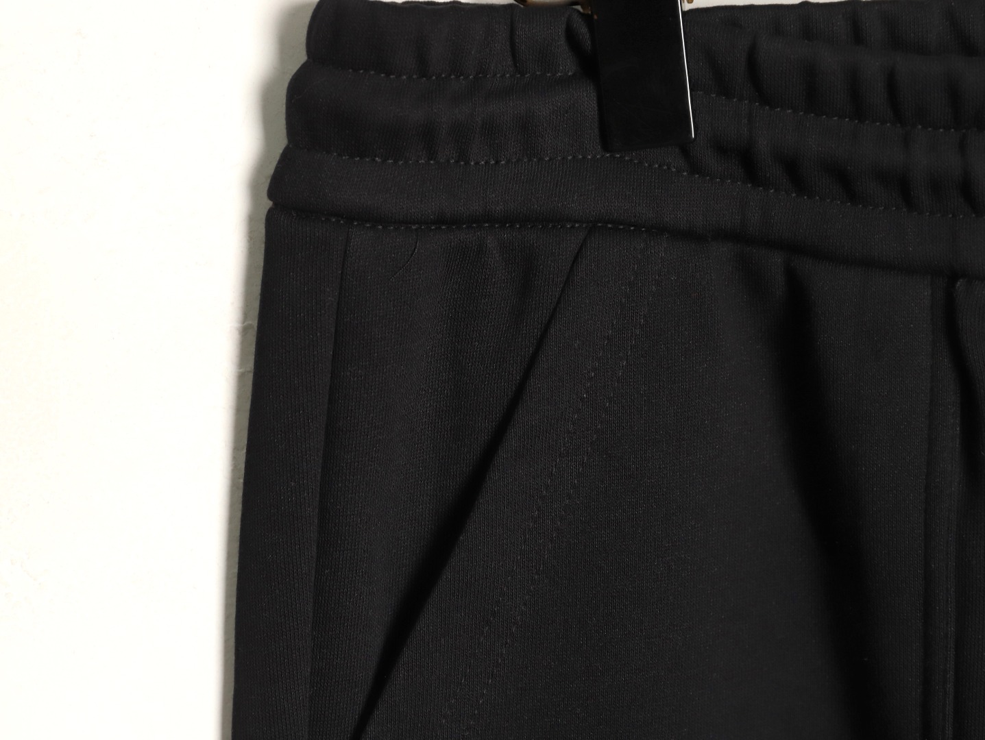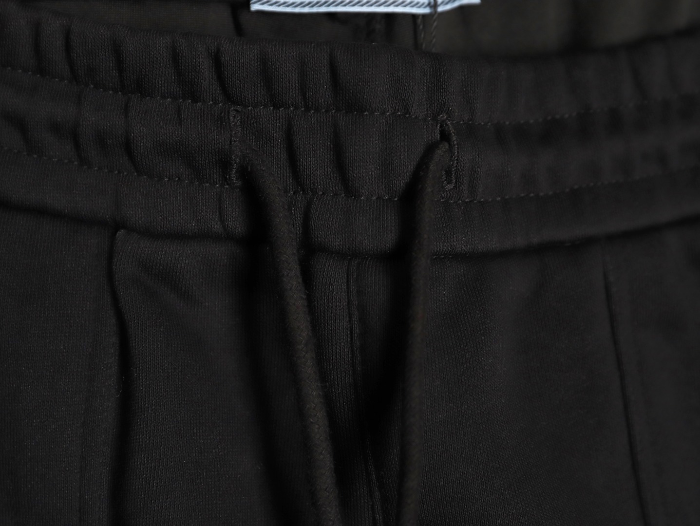 Red hem detail: The red hem trim breaks the dullness of the solid-colored trousers with simple lines. The red hue complements the red rubberized logo, reinforcing the overall design unity. The trim is secured with precision sewing, resulting in clean, fuzz-free edges. It adheres securely to the hem fabric, preventing it from falling off or curling after prolonged wear. This detail showcases the premium craftsmanship of a luxury brand, instantly elevating basic sweatpants to a stylish and vibrant look. 3. Practical Details: Multiple Pockets for Organizing and Styling