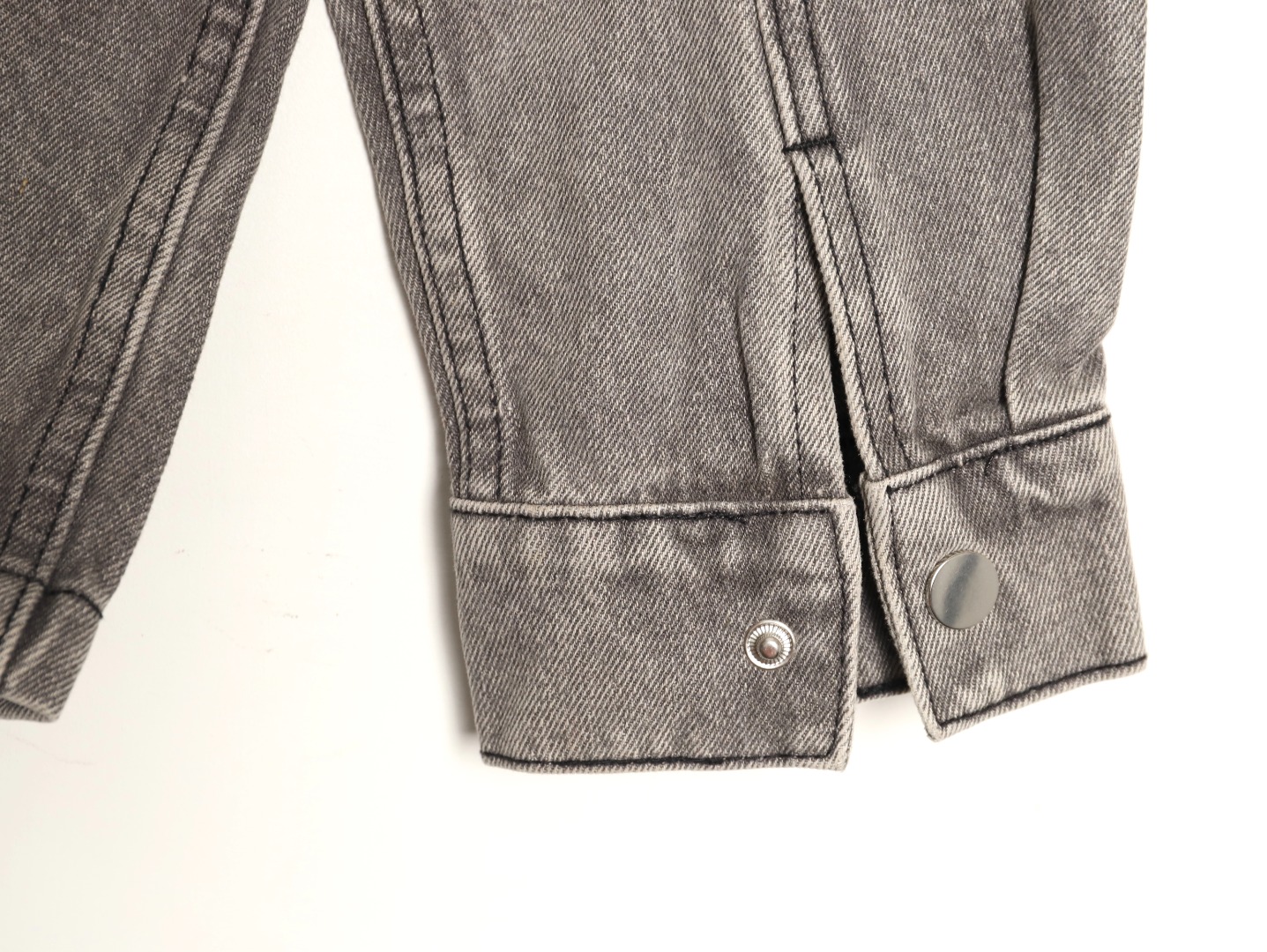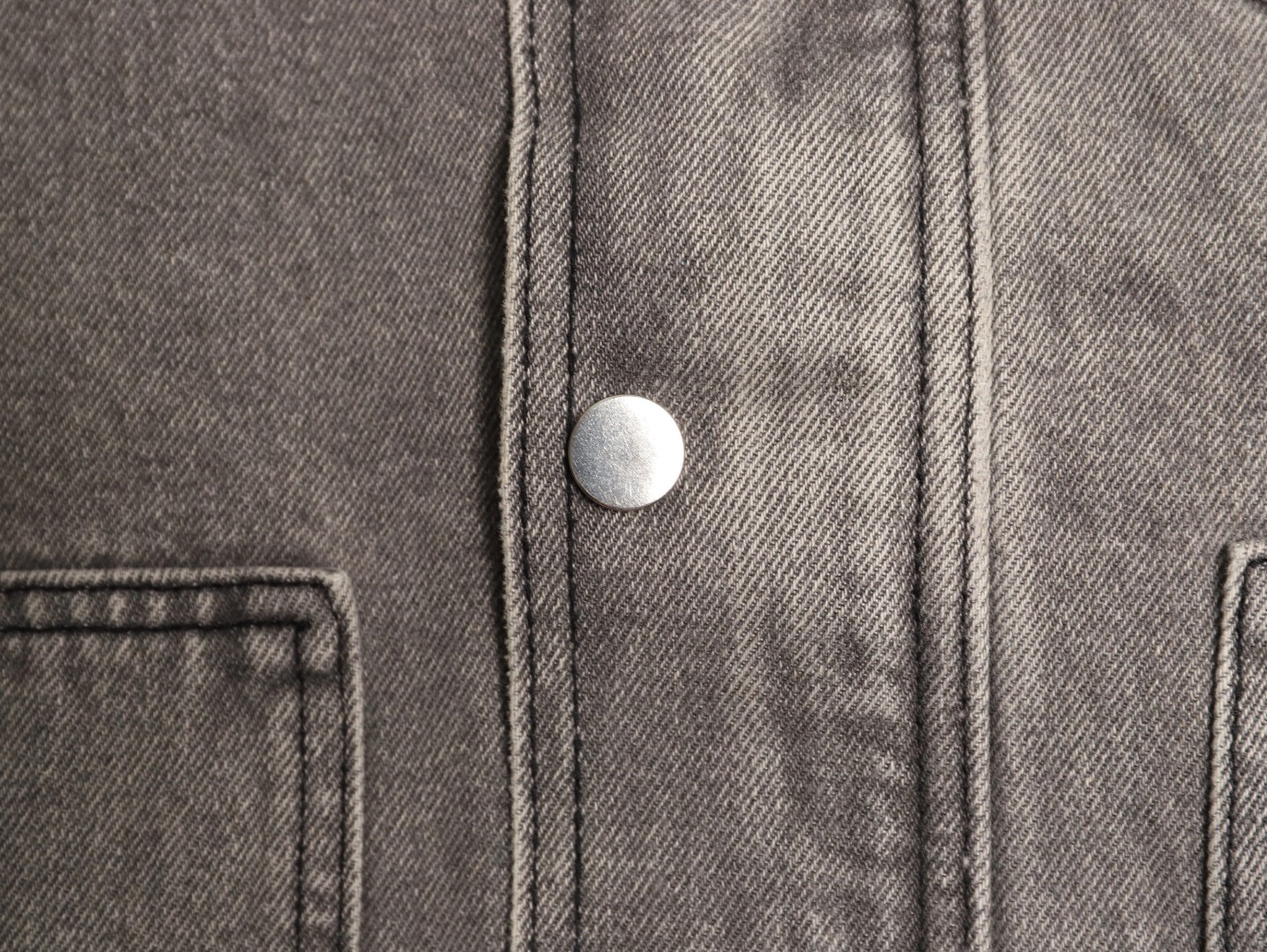 Heavy-Duty Washed Gray: This jacket undergoes a garment-grade heavy-duty wash process. This complex and meticulous process utilizes specialized equipment and a specific wash regimen to create a washed gray finish that rivals the original—a uniform, natural hue, free of color shifts or color blocks. The surface exhibits a soft, vintage-inspired bleached texture, preserving the denim's original texture while imbuing the jacket with a rich, vintage charm, unlike the harsh, typically washed finish. The wash process also optimizes the fabric's feel, softening the originally stiff denim to a soft, gentle softness. This ensures a comfortable fit without any roughness or itchiness. Double high-temperature lamination using imported high-end black mold material: This process, using imported machines and high-end black mold material, is extremely complex and challenging. High-temperature lamination ensures a tight fit between the fabric and trimmings (such as pocket edges and seams), eliminating the risk of delamination or peeling. The high-end black mold material creates a delicate, even black finish in the laminating areas, creating a subtle contrast with the washed gray fabric. This enhances the craftsmanship and enhances the durability of key areas, preventing issues like edge wear and thread unraveling during daily wear. Every detail showcases the high quality of luxury.