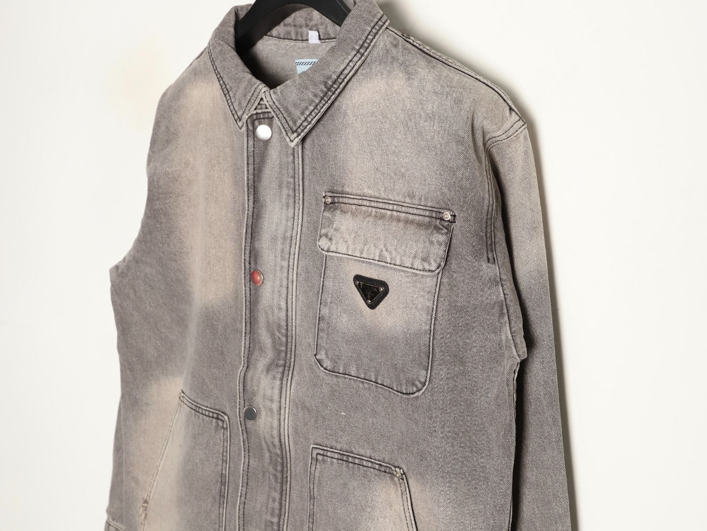 A classic PRADA piece that combines practicality with a retro chic, this multi-pocket washed denim jacket is crafted from custom-woven heavyweight fabrics and meticulously crafted, adhering to luxury standards from the custom-made materials to the finest details. The multiple pockets offer both storage and style, while the heavy-washed gray finish rivals the original. The discrete hardware and original buttons highlight the brand's premium quality, making it a versatile and stylish piece for spring and autumn, easily enhancing the sophistication and distinctiveness of everyday outfits.