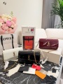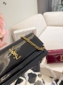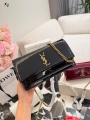 This SAINT LAURENT YSL KATE gold logo chain patent leather crossbody bag is the perfect fusion of classic and modern, showcasing YSL's distinctive craftsmanship and modern luxury. Crafted from glossy patent leather with a mirror-like finish, it creates an unparalleled visual impact and elegant elegance. The unique texture of patent leather imbues this bag with a modern feel while also offering exceptional durability, showcasing the brand's high-end craftsmanship.