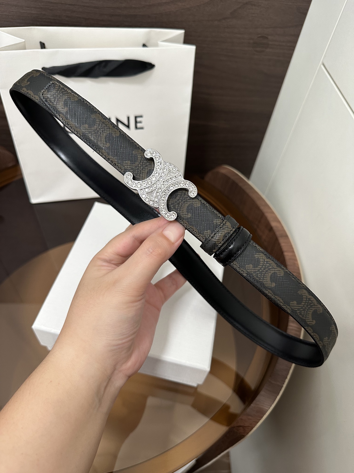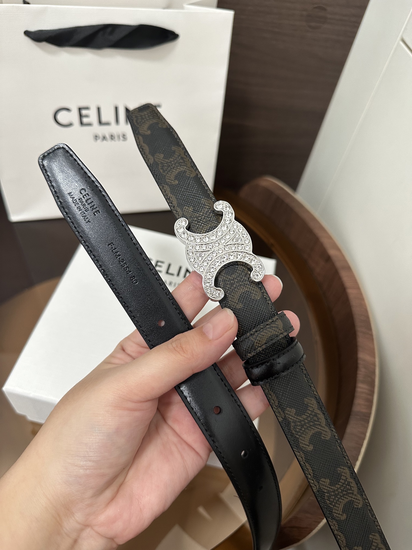 Céline women's leather belt printed double-sided belt black